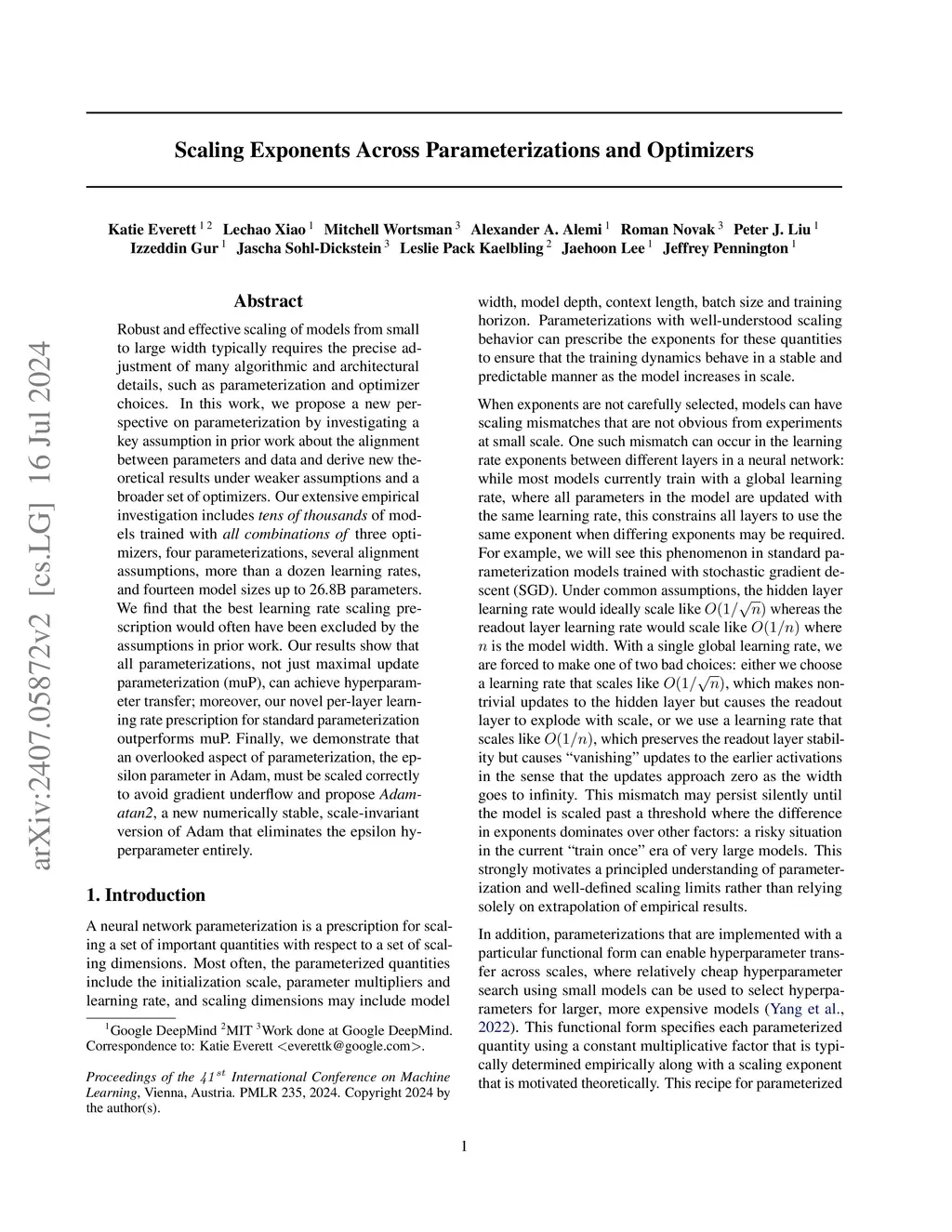 Robust and effective scaling of models from small to large width typically requires the precise adjustment of many algorithmic and architectural details, such as parameterization and optimizer choices. In this work, we propose a new perspective on parameterization by investigating a key assumption in prior work about the alignment between parameters and data and derive new theoretical results under weaker assumptions and a broader set of optimizers. Our extensive empirical investigation includes tens of thousands of models trained with all combinations of three optimizers, four parameterizations, several alignment assumptions, more than a dozen learning rates, and fourteen model sizes up to 26.8B parameters. We find that the best learning rate scaling prescription would often have been excluded by the assumptions in prior work. Our results show that all parameterizations, not just maximal update parameterization (muP), can achieve hyperparameter transfer; moreover, our novel per-layer learning rate prescription for standard parameterization outperforms muP. Finally, we demonstrate that an overlooked aspect of parameterization, the epsilon parameter in Adam, must be scaled correctly to avoid gradient underflow and propose Adam-atan2, a new numerically stable, scale-invariant version of Adam that eliminates the epsilon hyperparameter entirely.