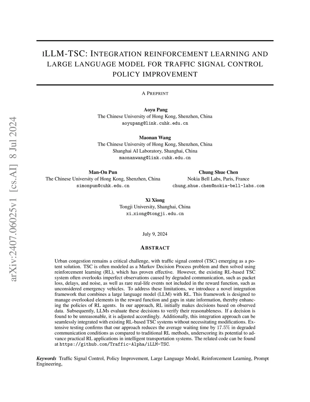 Urban congestion remains a critical challenge, with traffic signal control (TSC) emerging as a potent solution. TSC is often modeled as a Markov Decision Process problem and then solved using reinforcement learning (RL), which has proven effective. However, the existing RL-based TSC system often overlooks imperfect observations caused by degraded communication, such as packet loss, delays, and noise, as well as rare real-life events not included in the reward function, such as unconsidered emergency vehicles. To address these limitations, we introduce a novel integration framework that combines a large language model (LLM) with RL. This framework is designed to manage overlooked elements in the reward function and gaps in state information, thereby enhancing the policies of RL agents. In our approach, RL initially makes decisions based on observed data. Subsequently, LLMs evaluate these decisions to verify their reasonableness. If a decision is found to be unreasonable, it is adjusted accordingly. Additionally, this integration approach can be seamlessly integrated with existing RL-based TSC systems without necessitating modifications. Extensive testing confirms that our approach reduces the average waiting time by in degraded communication conditions as compared to traditional RL methods, underscoring its potential to advance practical RL applications in intelligent transportation systems. The related code can be found at \url{https://github.com/Traffic-Alpha/iLLM-TSC}.