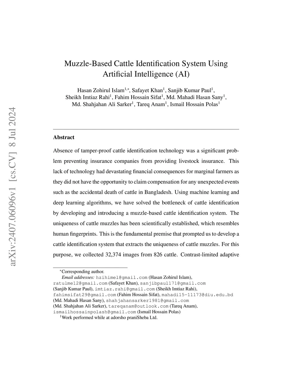 Muzzle-Based Cattle Identification System Using Artificial Intelligence (AI)