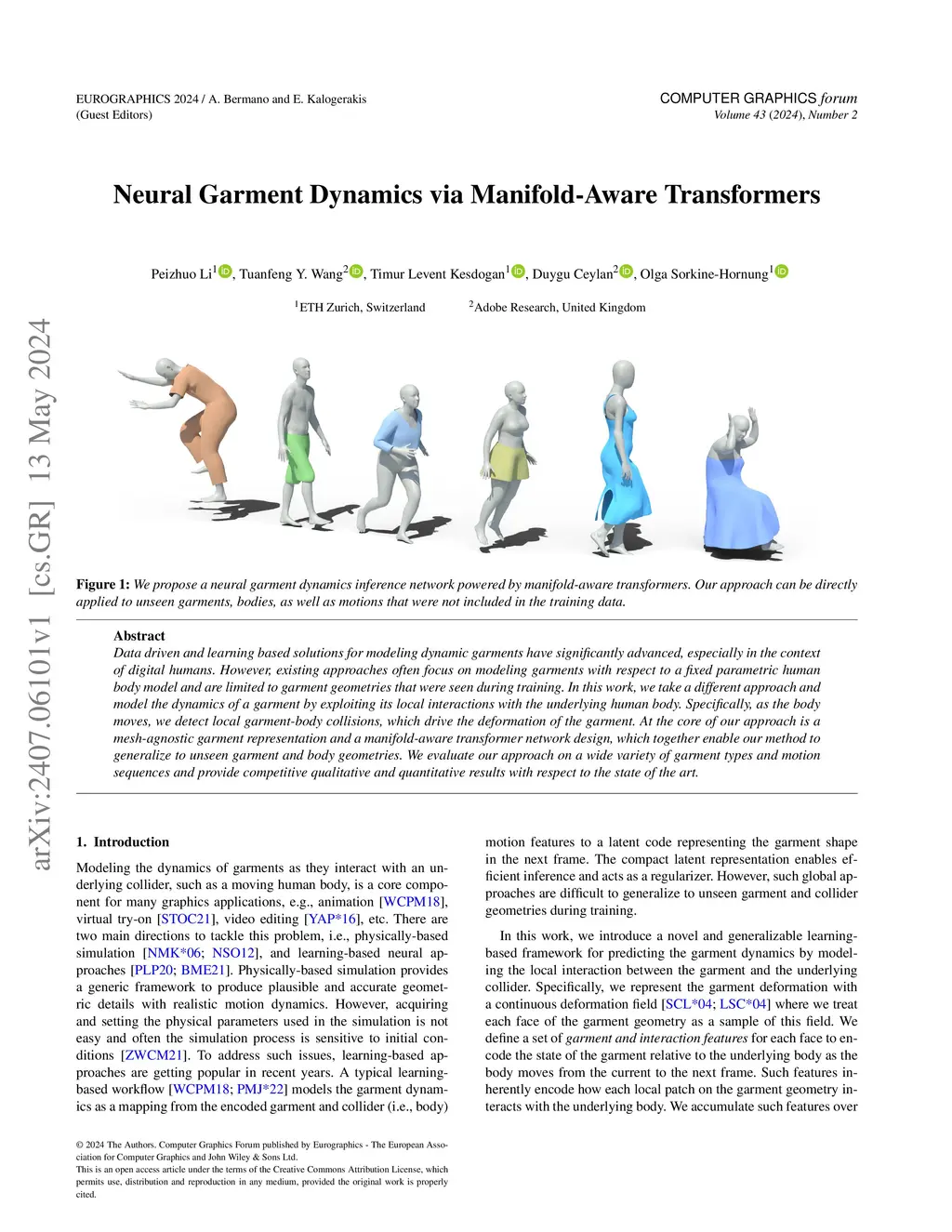 Data driven and learning based solutions for modeling dynamic garments have significantly advanced, especially in the context of digital humans. However, existing approaches often focus on modeling garments with respect to a fixed parametric human body model and are limited to garment geometries that were seen during training. In this work, we take a different approach and model the dynamics of a garment by exploiting its local interactions with the underlying human body. Specifically, as the body moves, we detect local garment-body collisions, which drive the deformation of the garment. At the core of our approach is a mesh-agnostic garment representation and a manifold-aware transformer network design, which together enable our method to generalize to unseen garment and body geometries. We evaluate our approach on a wide variety of garment types and motion sequences and provide competitive qualitative and quantitative results with respect to the state of the art.