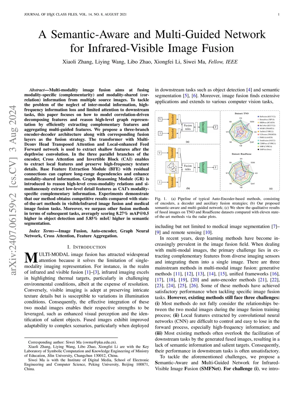 A Semantic-Aware and Multi-Guided Network for Infrared-Visible Image Fusion