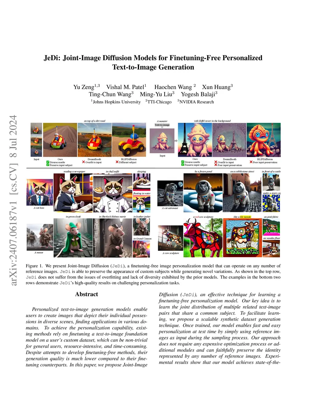 JeDi: Joint-Image Diffusion Models for Finetuning-Free Personalized