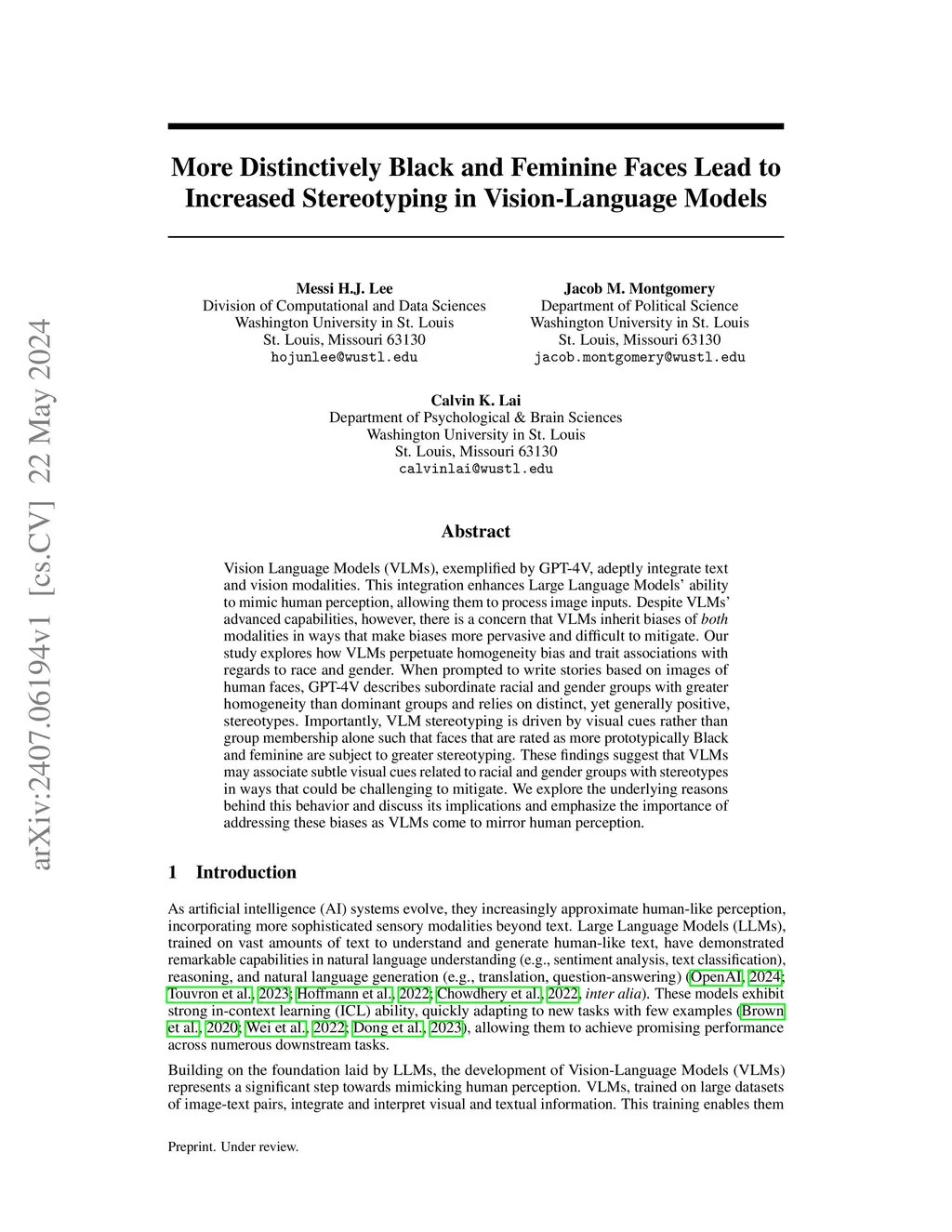 Vision Language Models (VLMs), exemplified by GPT-4V, adeptly integrate text and vision modalities. This integration enhances Large Language Models' ability to mimic human perception, allowing them to process image inputs. Despite VLMs' advanced capabilities, however, there is a concern that VLMs inherit biases of both modalities in ways that make biases more pervasive and difficult to mitigate. Our study explores how VLMs perpetuate homogeneity bias and trait associations with regards to race and gender. When prompted to write stories based on images of human faces, GPT-4V describes subordinate racial and gender groups with greater homogeneity than dominant groups and relies on distinct, yet generally positive, stereotypes. Importantly, VLM stereotyping is driven by visual cues rather than group membership alone such that faces that are rated as more prototypically Black and feminine are subject to greater stereotyping. These findings suggest that VLMs may associate subtle visual cues related to racial and gender groups with stereotypes in ways that could be challenging to mitigate. We explore the underlying reasons behind this behavior and discuss its implications and emphasize the importance of addressing these biases as VLMs come to mirror human perception.