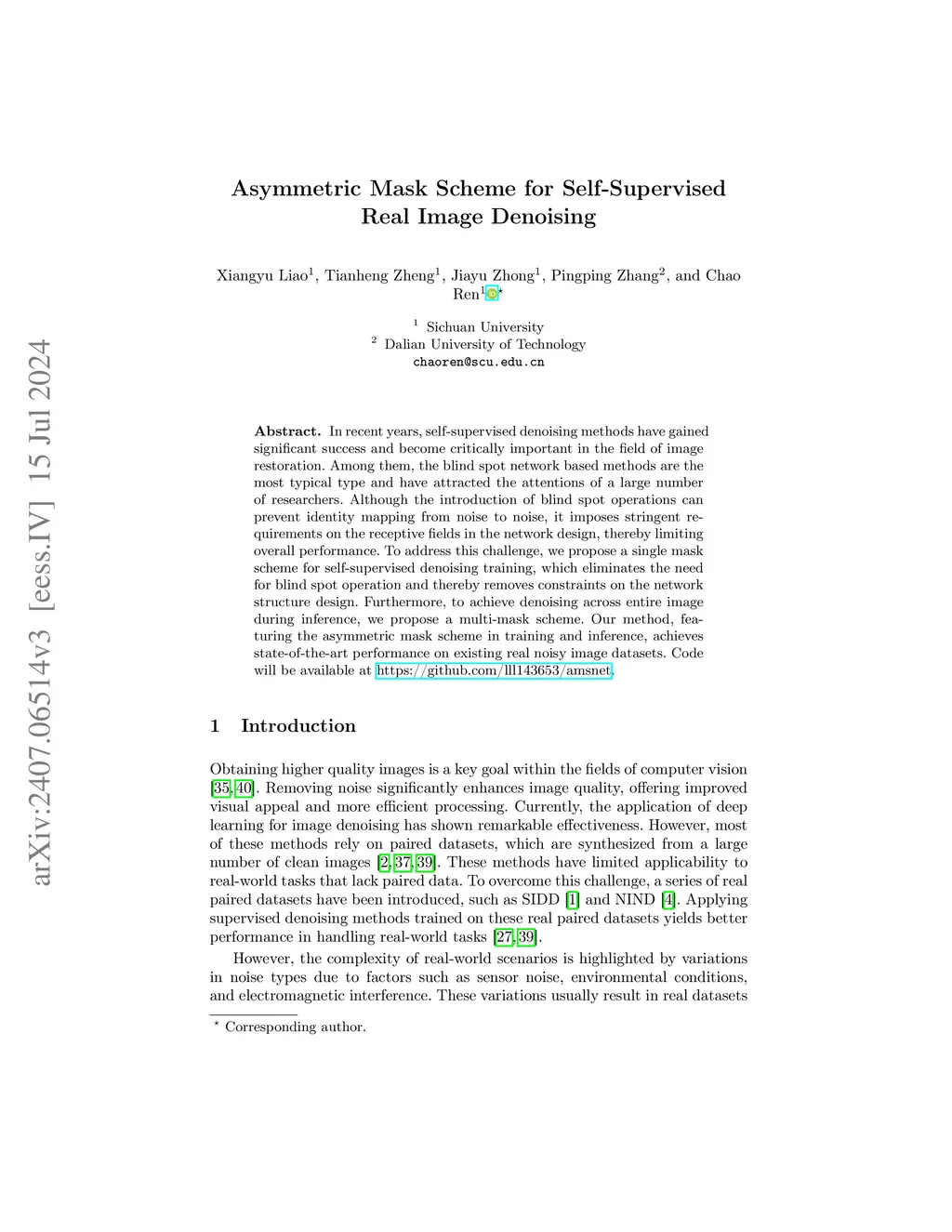 Asymmetric Mask Scheme for Self-Supervised Real Image Denoising