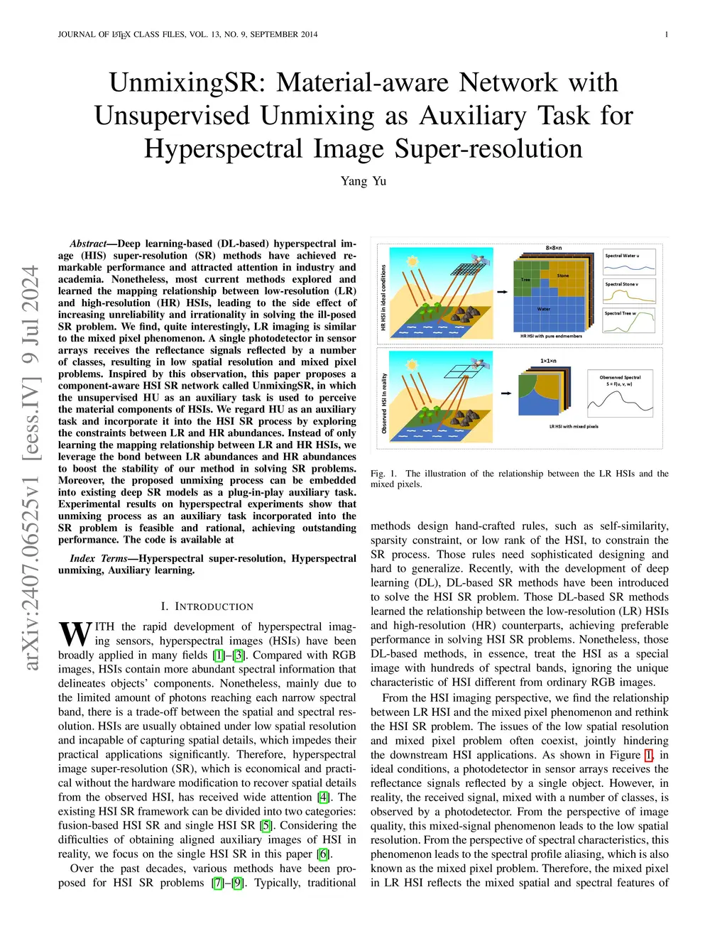 UnmixingSR: Material-aware Network with Unsupervised Unmixing as