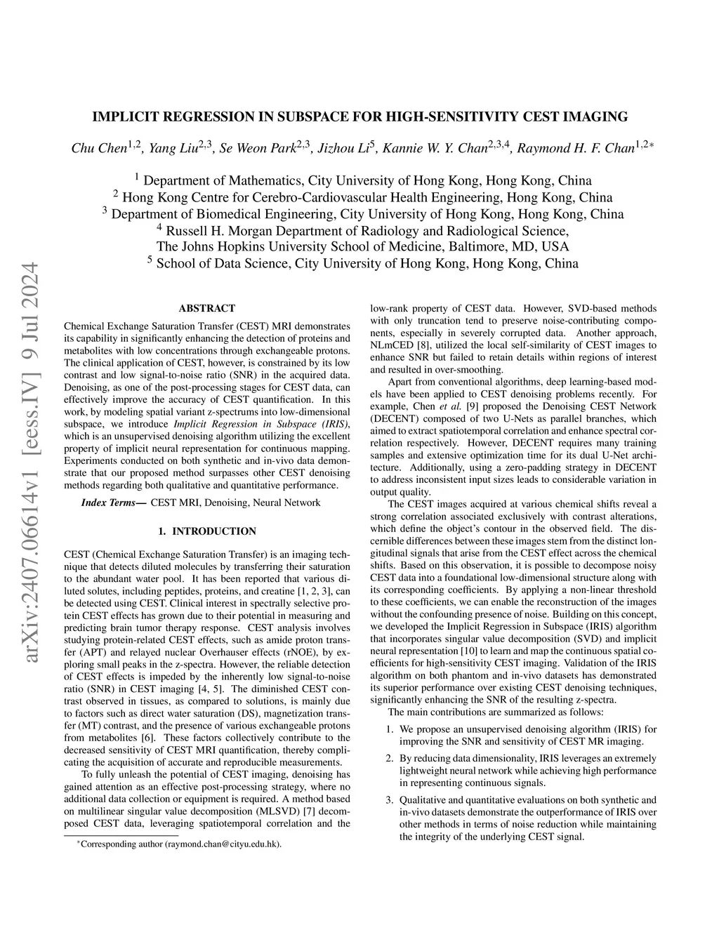 Implicit Regression in Subspace for High-Sensitivity CEST Imaging