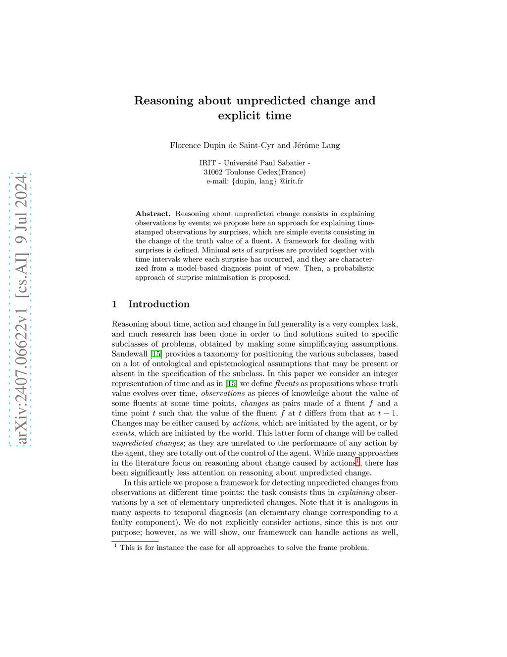 Reasoning about unpredicted change and explicit time