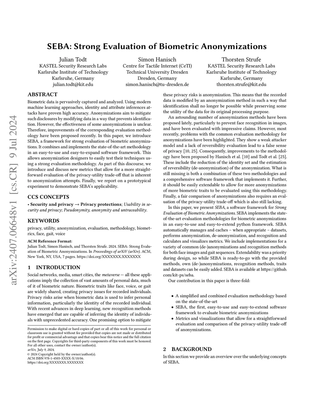 SEBA: Strong Evaluation of Biometric Anonymizations
