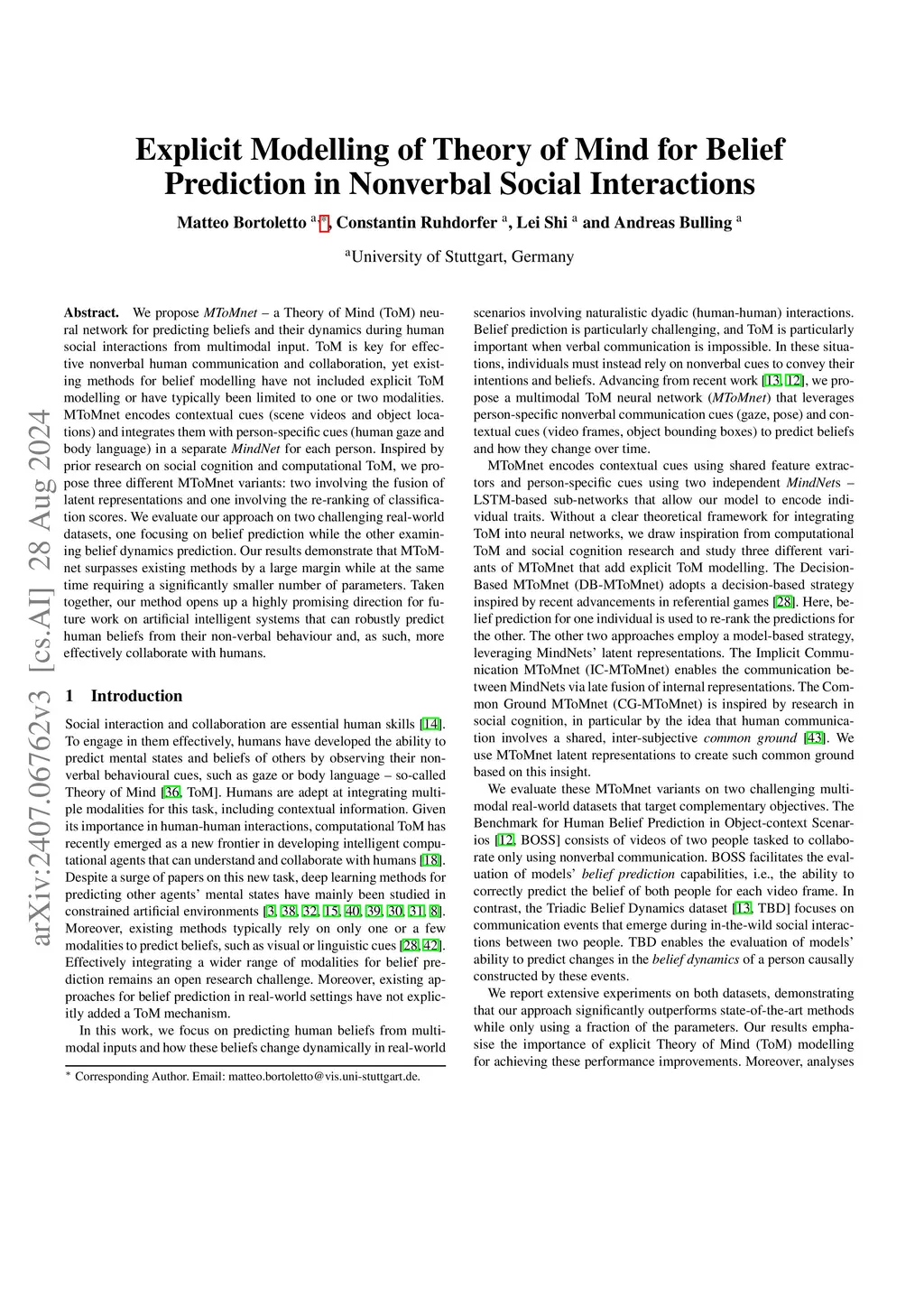 Explicit Modelling of Theory of Mind for Belief Prediction in Nonverbal