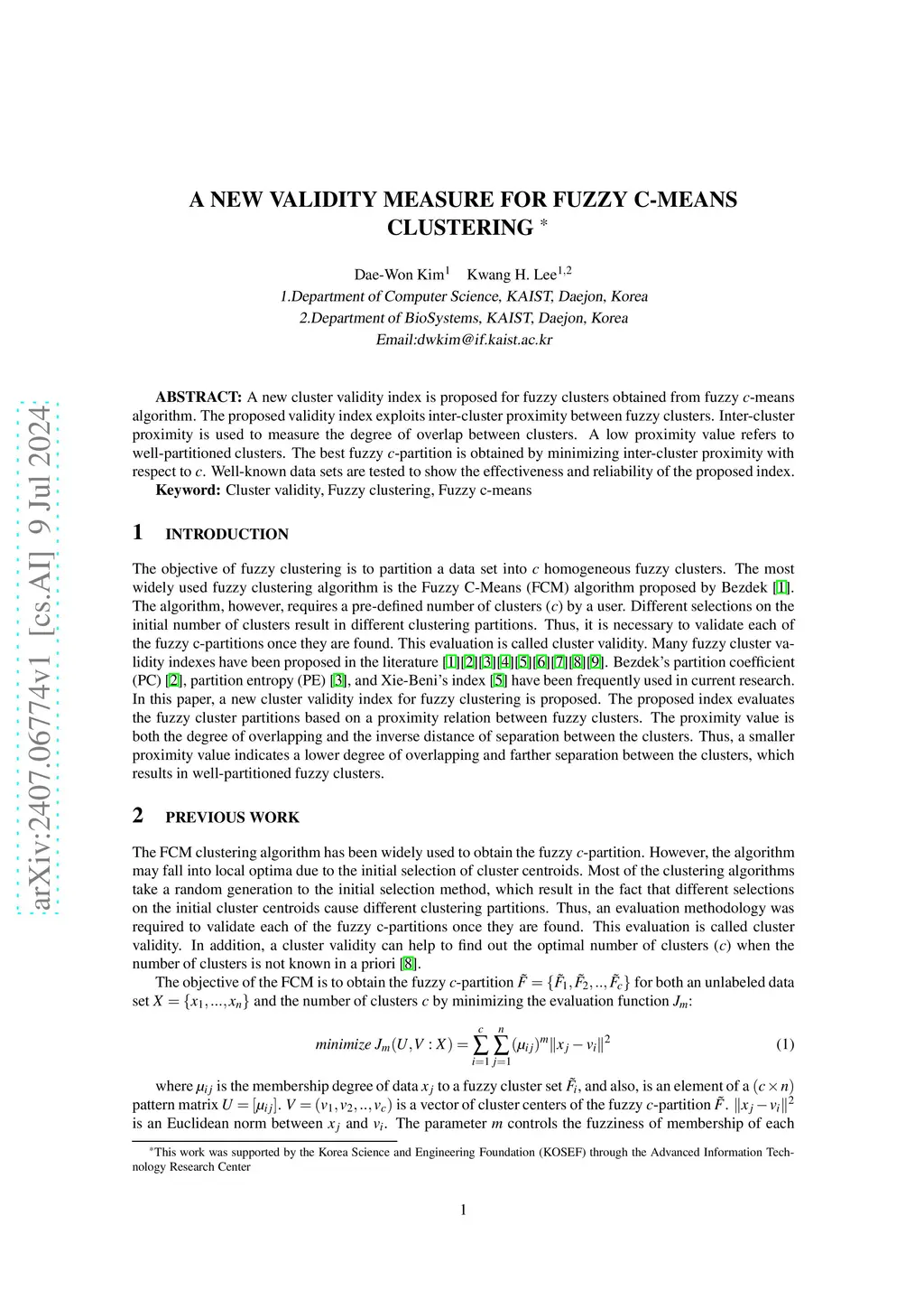 A new validity measure for fuzzy c-means clustering