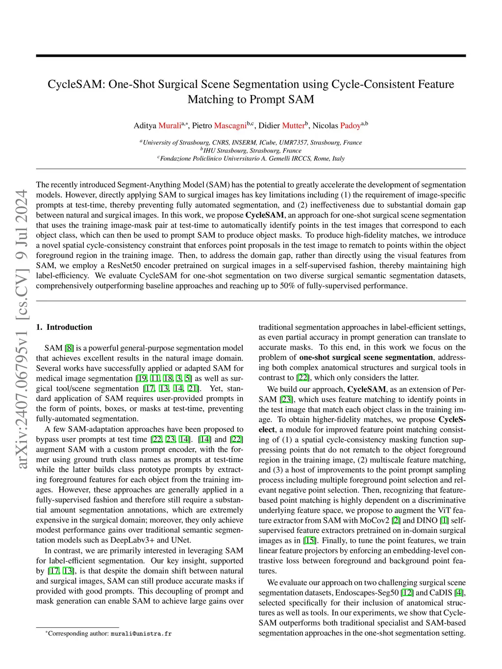 CycleSAM: Few-Shot Surgical Scene Segmentation with Cycle- and Scene-Consistent Feature Matching