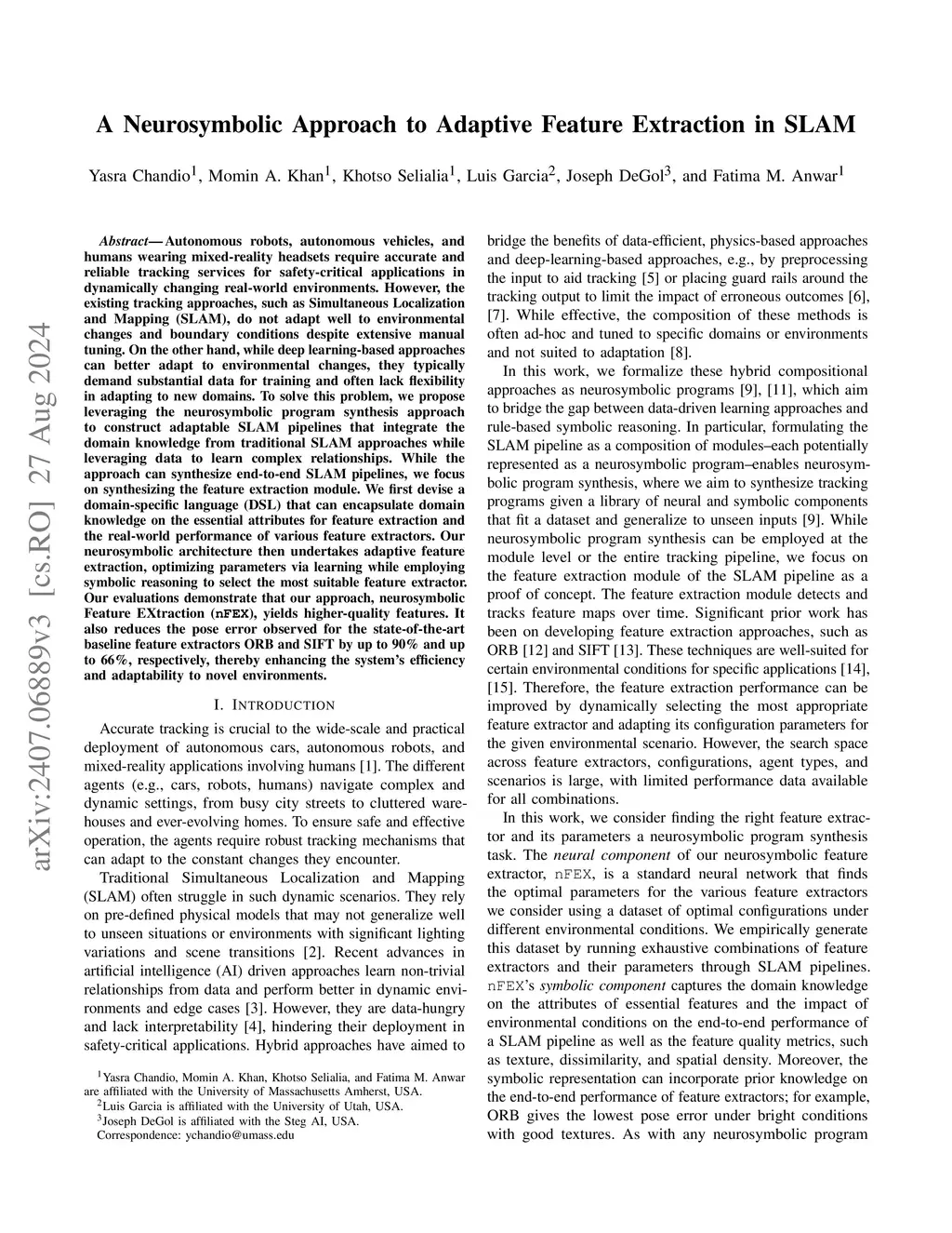 A Neurosymbolic Approach to Adaptive Feature Extraction in SLAM
