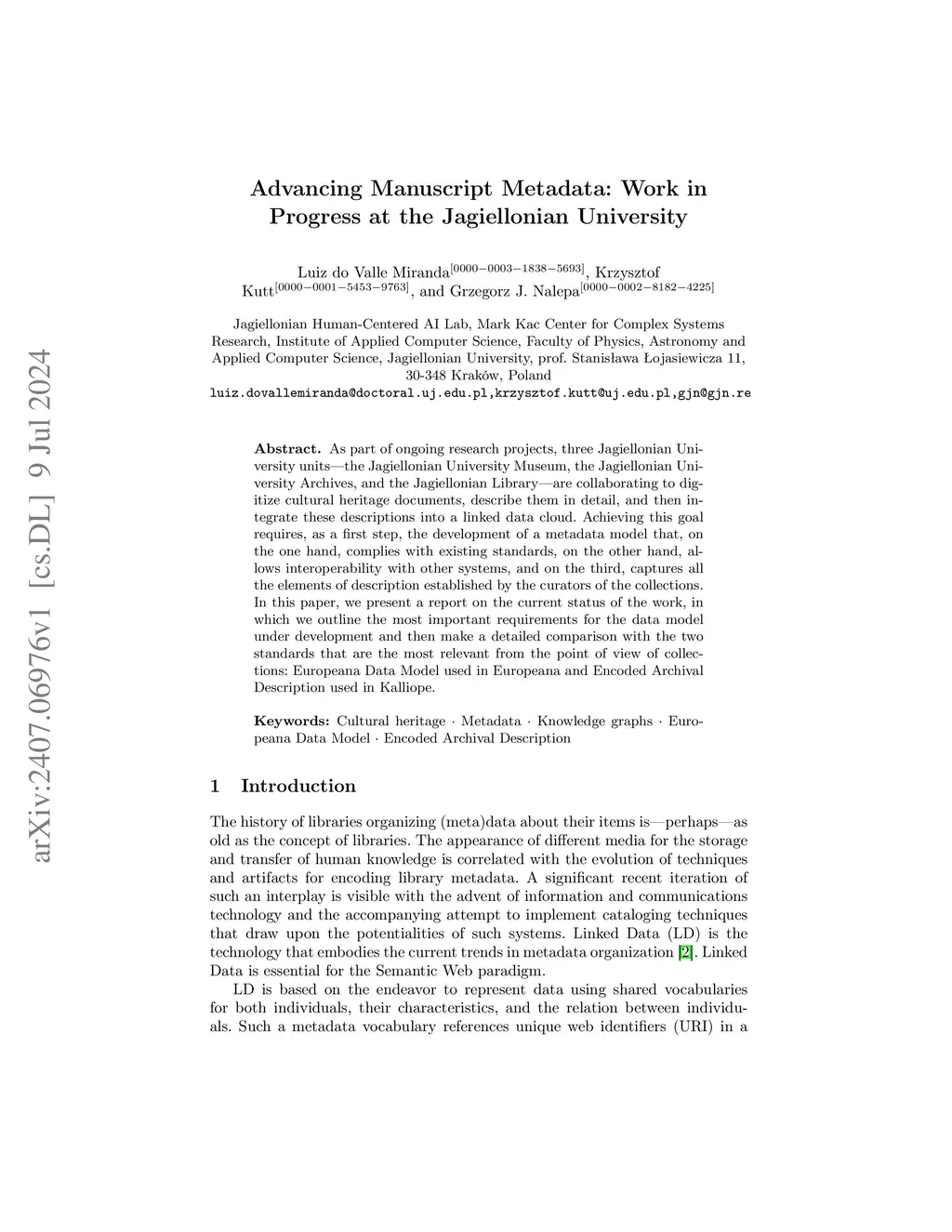 Rich Interoperable Metadata for Cultural Heritage Projects at Jagiellonian University