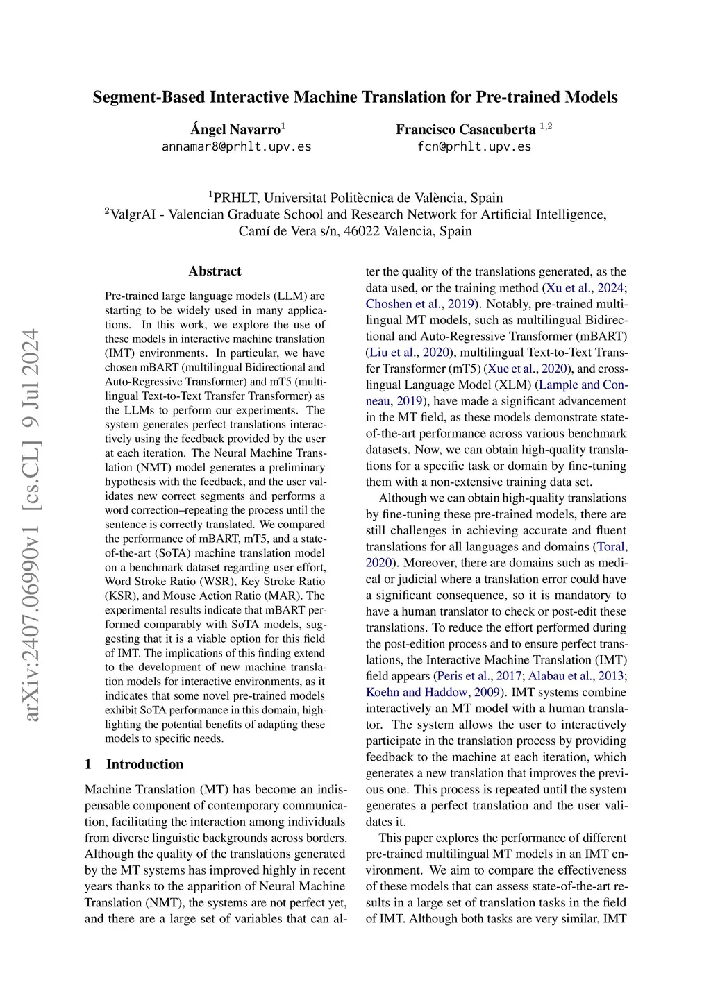 Segment-Based Interactive Machine Translation for Pre-trained Models