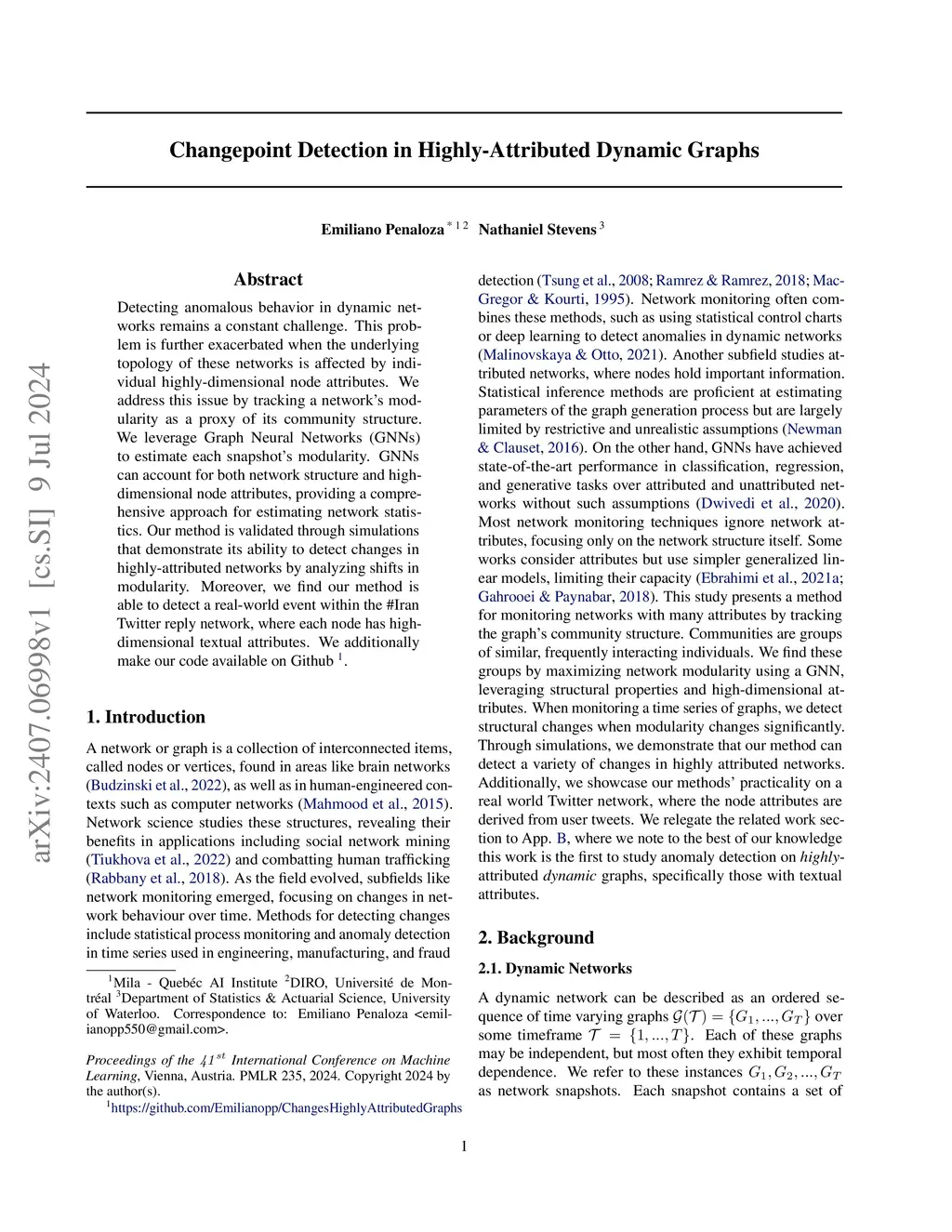 Detecting anomalous behavior in dynamic networks remains a constant challenge. This problem is further exacerbated when the underlying topology of these networks is affected by individual highly-dimensional node attributes. We address this issue by tracking a network's modularity as a proxy of its community structure. We leverage Graph Neural Networks (GNNs) to estimate each snapshot's modularity. GNNs can account for both network structure and high-dimensional node attributes, providing a comprehensive approach for estimating network statistics. Our method is validated through simulations that demonstrate its ability to detect changes in highly-attributed networks by analyzing shifts in modularity. Moreover, we find our method is able to detect a real-world event within the \#Iran Twitter reply network, where each node has high-dimensional textual attributes.
