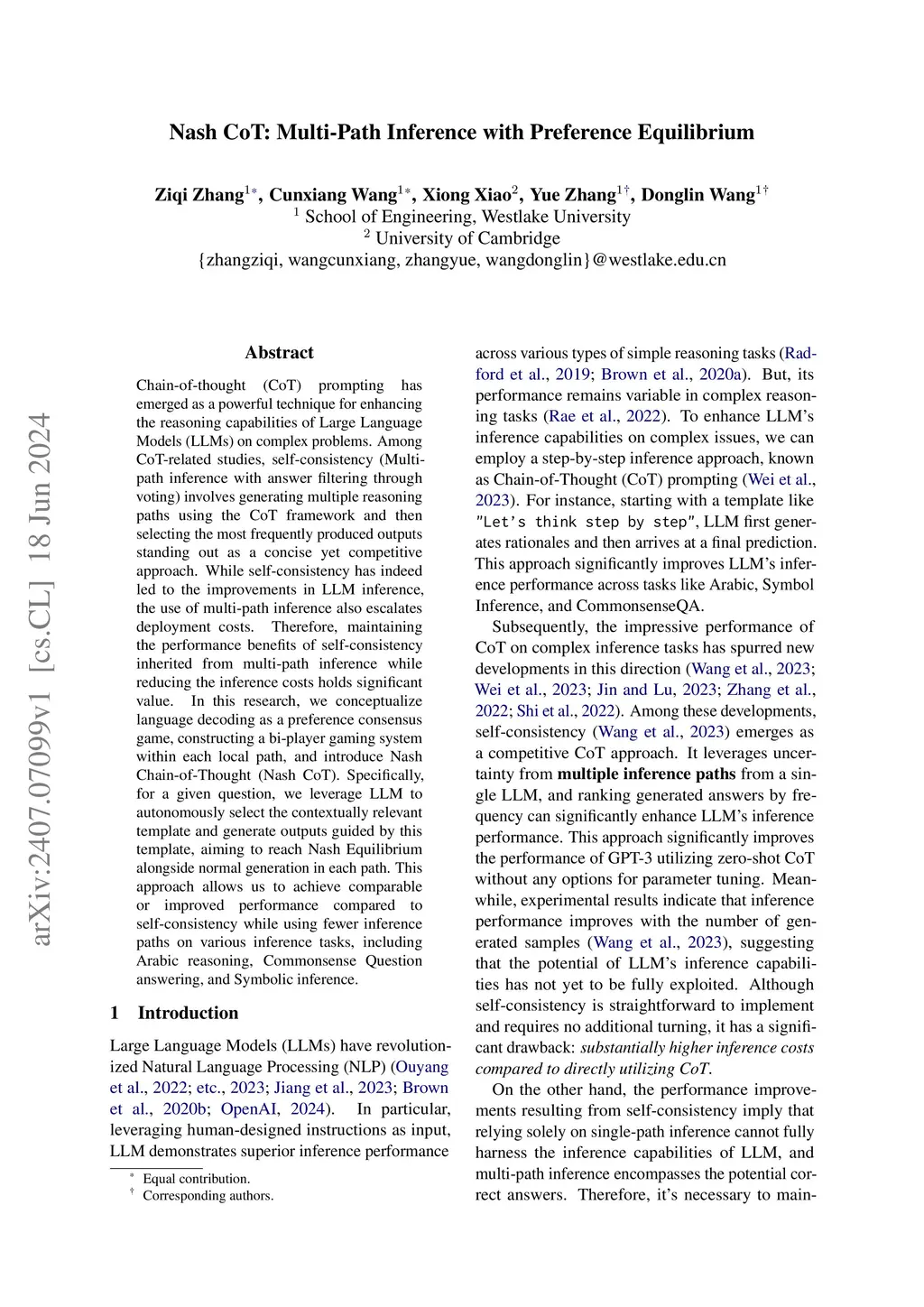 Nash CoT: Multi-Path Inference with Preference Equilibrium