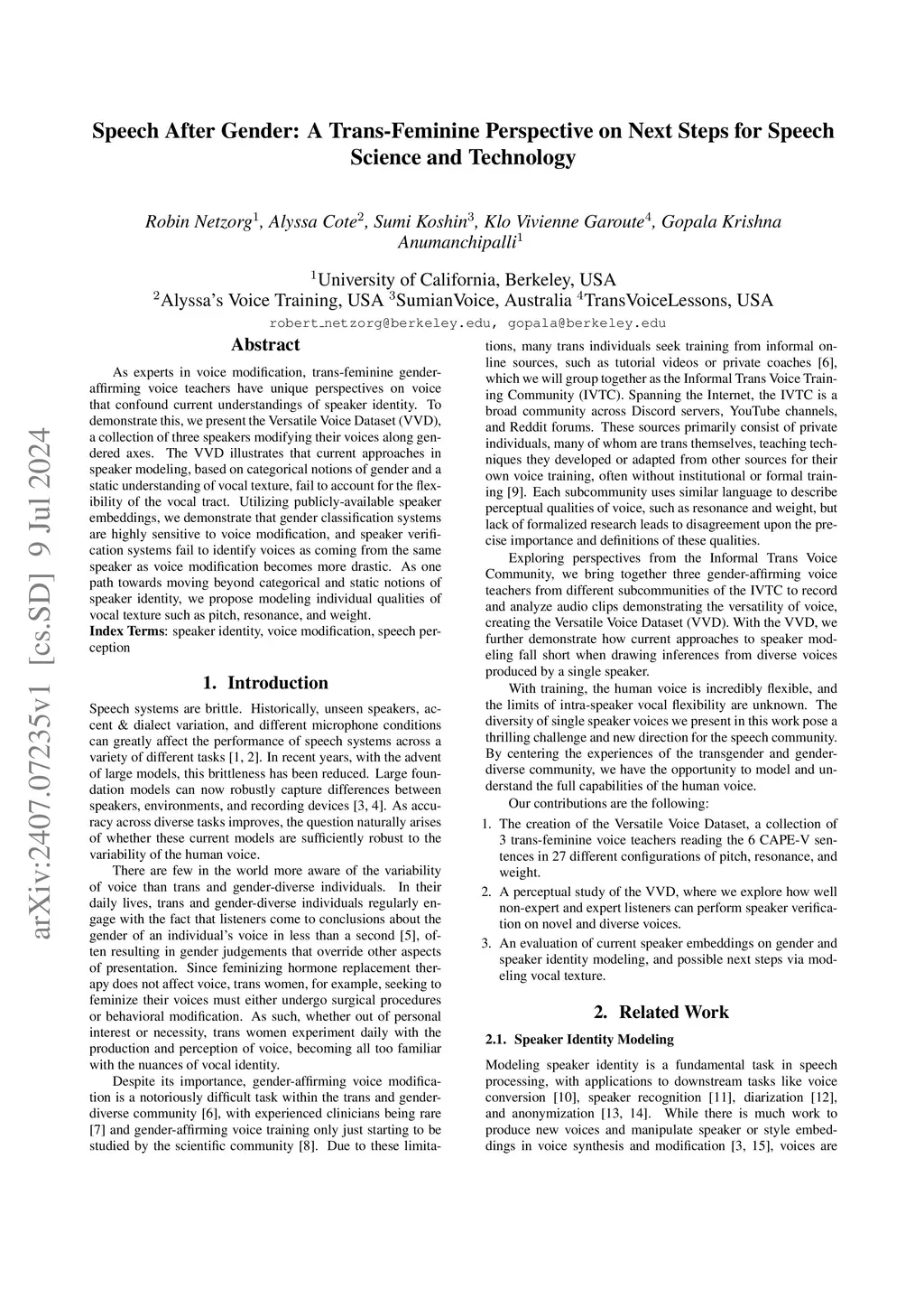 As experts in voice modification, trans-feminine gender-affirming voice teachers have unique perspectives on voice that confound current understandings of speaker identity. To demonstrate this, we present the Versatile Voice Dataset (VVD), a collection of three speakers modifying their voices along gendered axes. The VVD illustrates that current approaches in speaker modeling, based on categorical notions of gender and a static understanding of vocal texture, fail to account for the flexibility of the vocal tract. Utilizing publicly-available speaker embeddings, we demonstrate that gender classification systems are highly sensitive to voice modification, and speaker verification systems fail to identify voices as coming from the same speaker as voice modification becomes more drastic. As one path towards moving beyond categorical and static notions of speaker identity, we propose modeling individual qualities of vocal texture such as pitch, resonance, and weight.