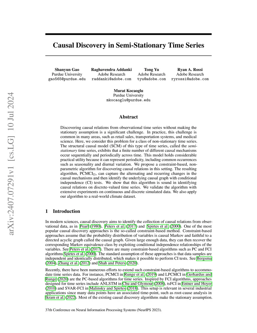 Causal Discovery in Semi-Stationary Time Series