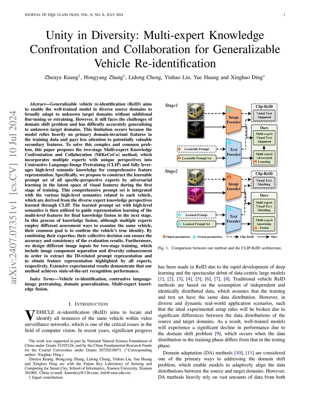 Generalizable vehicle re-identification (ReID) seeks to develop models that can adapt to unknown target domains without the need for additional fine-tuning or retraining. Previous works have mainly focused on extracting domain-invariant features by aligning data distributions between source domains. However, interfered by the inherent domain-related redundancy in the source images, solely relying on common features is insufficient for accurately capturing the complementary features with lower occurrence probability and smaller energy. To solve this unique problem, we propose a two-stage Multi-expert Knowledge Confrontation and Collaboration (MiKeCoCo) method, which fully leverages the high-level semantics of Contrastive Language-Image Pretraining (CLIP) to obtain a diversified prompt set and achieve complementary feature representations. Specifically, this paper first designs a Spectrum-based Transformation for Redundancy Elimination and Augmentation Module (STREAM) through simple image preprocessing to obtain two types of image inputs for the training process. Since STREAM eliminates domain-related redundancy in source images, it enables the model to pay closer attention to the detailed prompt set that is crucial for distinguishing fine-grained vehicles. This learned prompt set related to the vehicle identity is then utilized to guide the comprehensive representation learning of complementary features for final knowledge fusion and identity recognition. Inspired by the unity principle, MiKeCoCo integrates the diverse evaluation ways of experts to ensure the accuracy and consistency of ReID. Extensive experimental results demonstrate that our method achieves state-of-the-art performance.