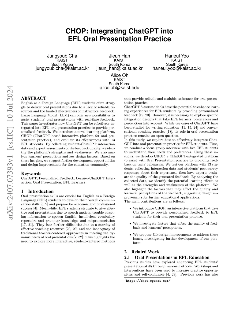 CHOP: Integrating ChatGPT into EFL Oral Presentation Practice