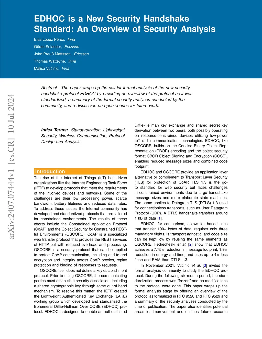 EDHOC is a New Security Handshake Standard: An Overview of Security