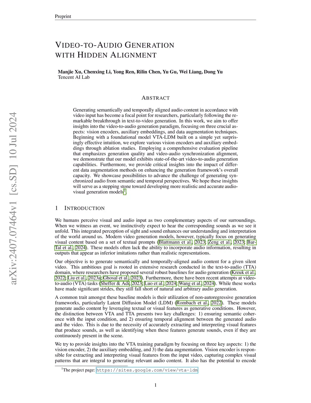 Video-to-Audio Generation with Hidden Alignment