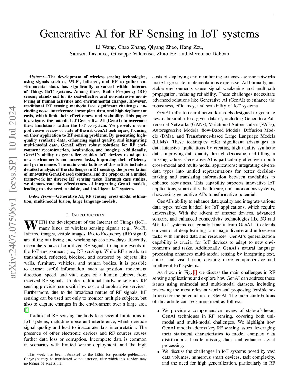 Generative AI for RF Sensing in IoT systems