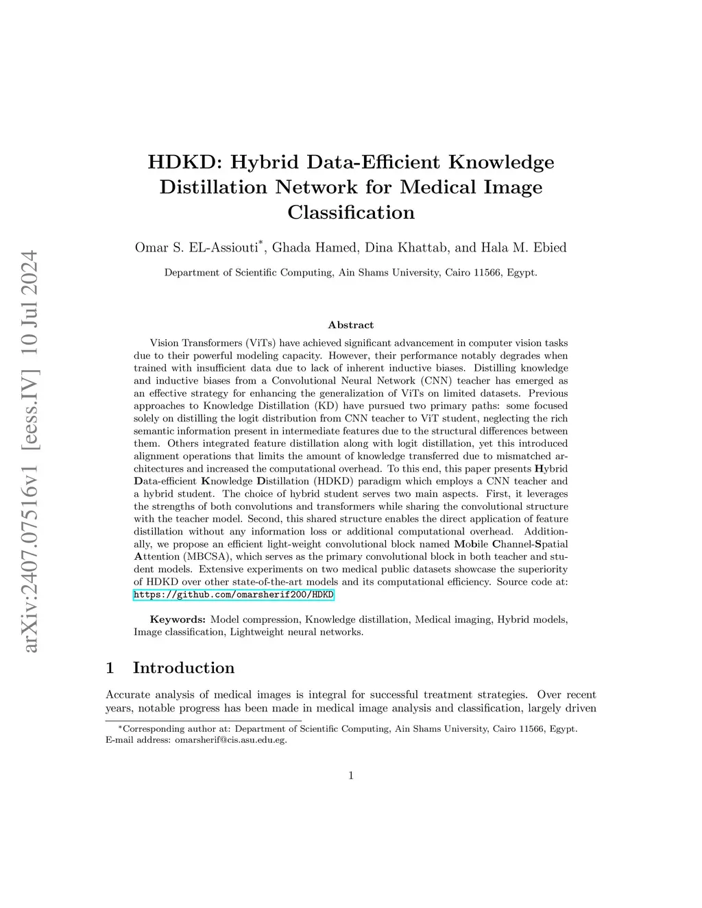 HDKD: Hybrid Data-Efficient Knowledge Distillation Network for Medical Image Classification