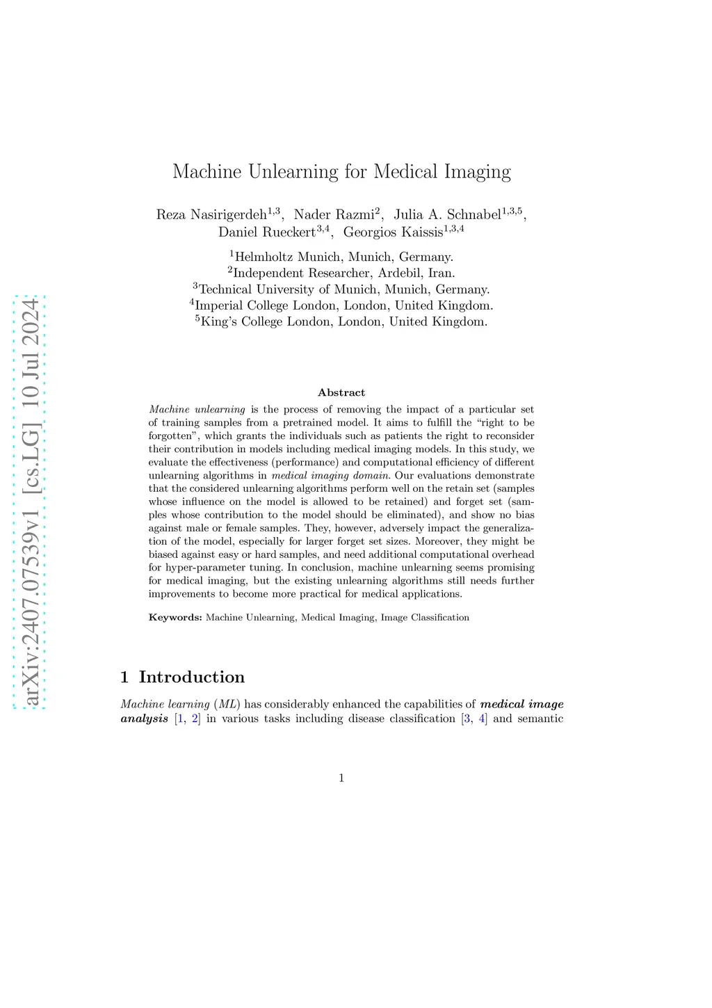 Machine Unlearning for Medical Imaging