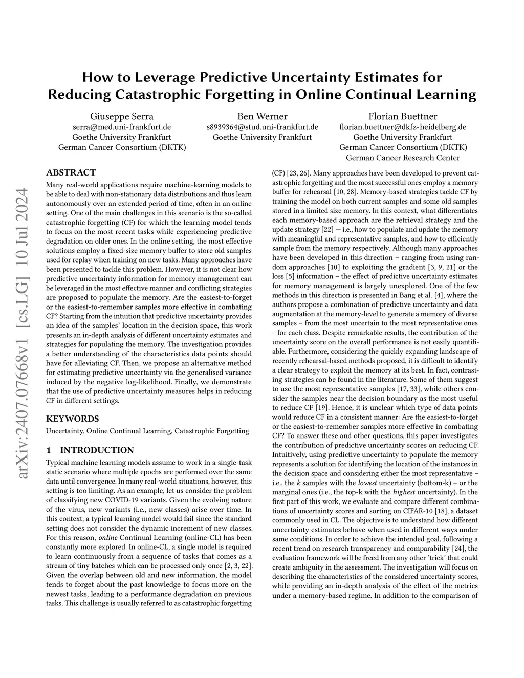 Many real-world applications require machine-learning models to be able to deal with non-stationary data distributions and thus learn autonomously over an extended period of time, often in an online setting. One of the main challenges in this scenario is the so-called catastrophic forgetting (CF) for which the learning model tends to focus on the most recent tasks while experiencing predictive degradation on older ones. In the online setting, the most effective solutions employ a fixed-size memory buffer to store old samples used for replay when training on new tasks. Many approaches have been presented to tackle this problem. However, it is not clear how predictive uncertainty information for memory management can be leveraged in the most effective manner and conflicting strategies are proposed to populate the memory. Are the easiest-to-forget or the easiest-to-remember samples more effective in combating CF? Starting from the intuition that predictive uncertainty provides an idea of the samples' location in the decision space, this work presents an in-depth analysis of different uncertainty estimates and strategies for populating the memory. The investigation provides a better understanding of the characteristics data points should have for alleviating CF. Then, we propose an alternative method for estimating predictive uncertainty via the generalised variance induced by the negative log-likelihood. Finally, we demonstrate that the use of predictive uncertainty measures helps in reducing CF in different settings.