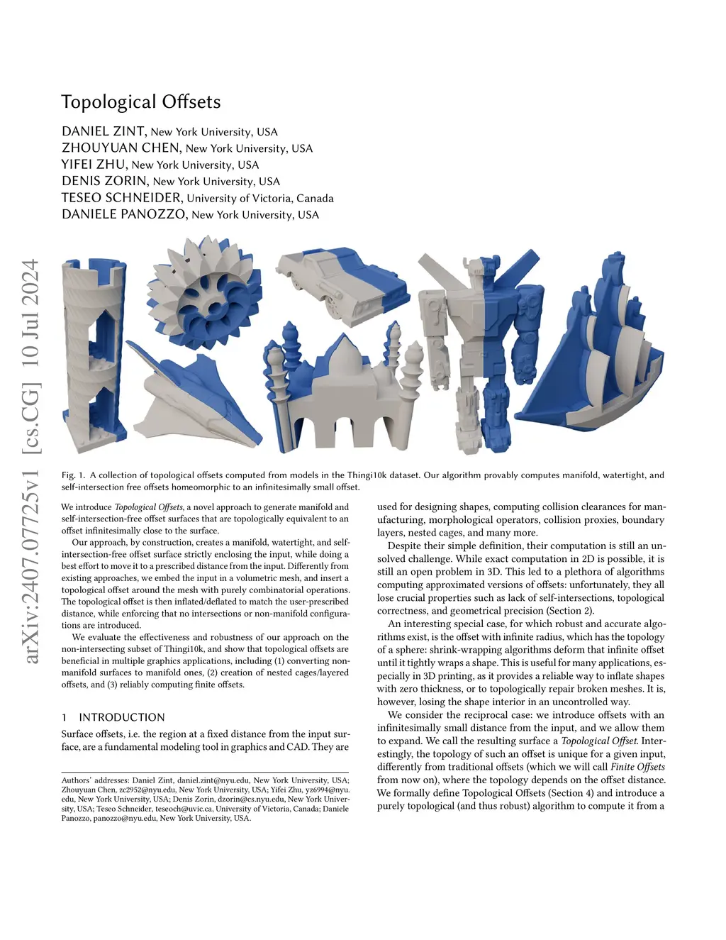 We introduce Topological Offsets, a novel approach to generate manifold and self-intersection-free offset surfaces that are topologically equivalent to an offset infinitesimally close to the surface. Our approach, by construction, creates a manifold, watertight, and self-intersection-free offset surface strictly enclosing the input, while doing a best effort to move it to a prescribed distance from the input. Differently from existing approaches, we embed the input in a background mesh and insert a topological offset around the input with purely combinatorial operations. The topological offset is then inflated/deflated to match the user-prescribed distance while enforcing that no intersections or non-manifold configurations are introduced. We evaluate the effectiveness and robustness of our approach on the Thingi10k dataset, and show that topological offsets are beneficial in multiple graphics applications, including (1) converting non-manifold surfaces to manifold ones, (2) creating layered offsets, and (3) reliably computing finite offsets.