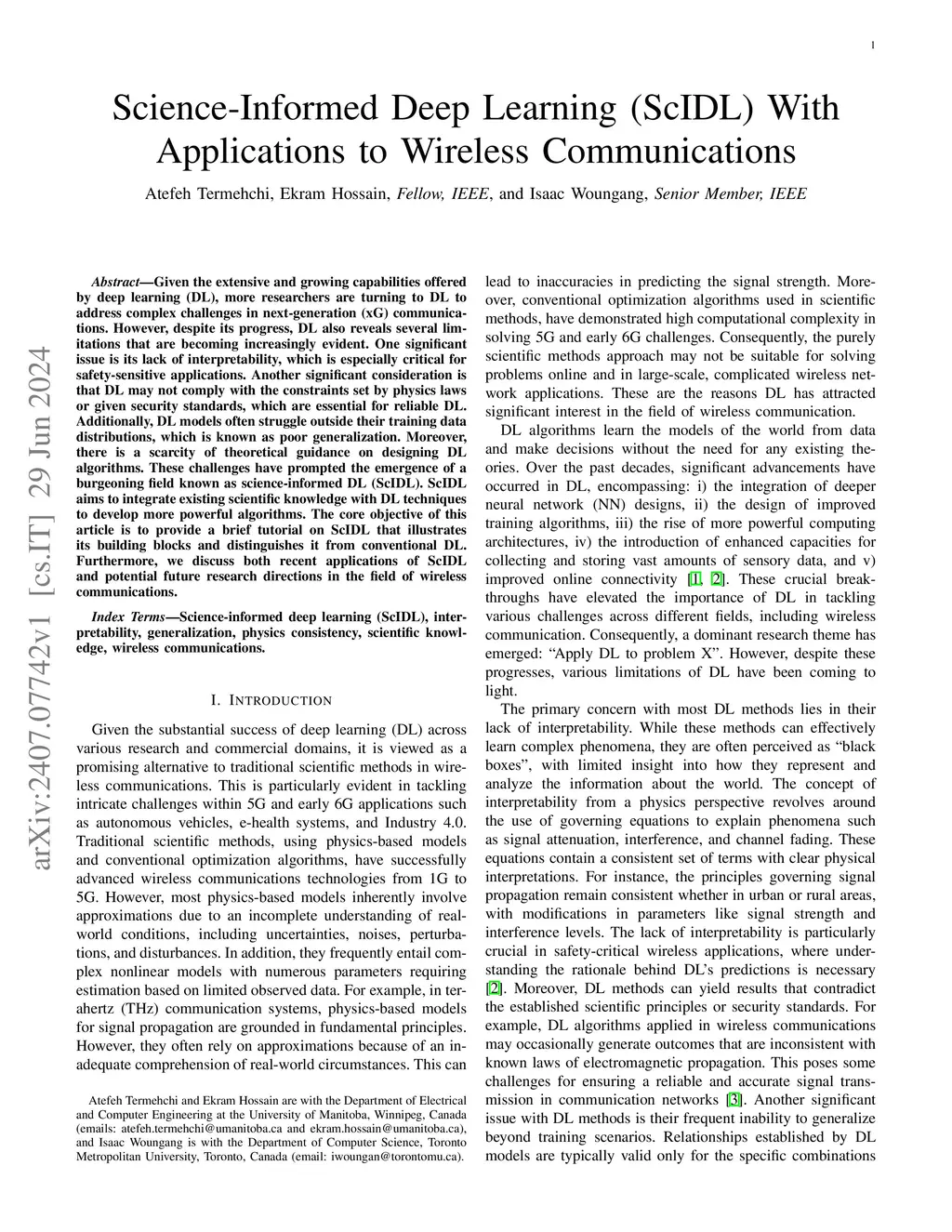 Recent advances in computational infrastructure and large-scale data processing have accelerated the adoption of data-driven inference methods, particularly deep learning (DL), to solve problems in many scientific and engineering domains. In wireless systems, DL has been applied to problems where analytical modeling or optimization is difficult to formulate, relies on oversimplified assumptions, or becomes computationally intractable. However, conventional DL models are often regarded as non-transparent, as their internal reasoning mechanisms are difficult to interpret even when model parameters are fully accessible. This lack of transparency undermines trust and leads to three interrelated challenges: limited interpretability, weak generalization, and the absence of a principled framework for parameter tuning. Science-informed deep learning (ScIDL) has emerged as a promising paradigm to address these limitations by integrating scientific knowledge into deep learning pipelines. This integration enables more precise characterization of model behavior and provides clearer explanations of how and why DL models succeed or fail. Despite growing interest, the existing literature remains fragmented and lacks a unifying taxonomy. This tutorial presents a structured overview of ScIDL methods and their applications in wireless systems. We introduce a structured taxonomy that organizes the ScIDL landscape, present two representative case studies illustrating its use in challenging wireless problems, and discuss key challenges and open research directions. The pedagogical structure guides readers from foundational concepts to advanced applications, making the tutorial accessible to researchers in wireless communications without requiring prior expertise in AI.
