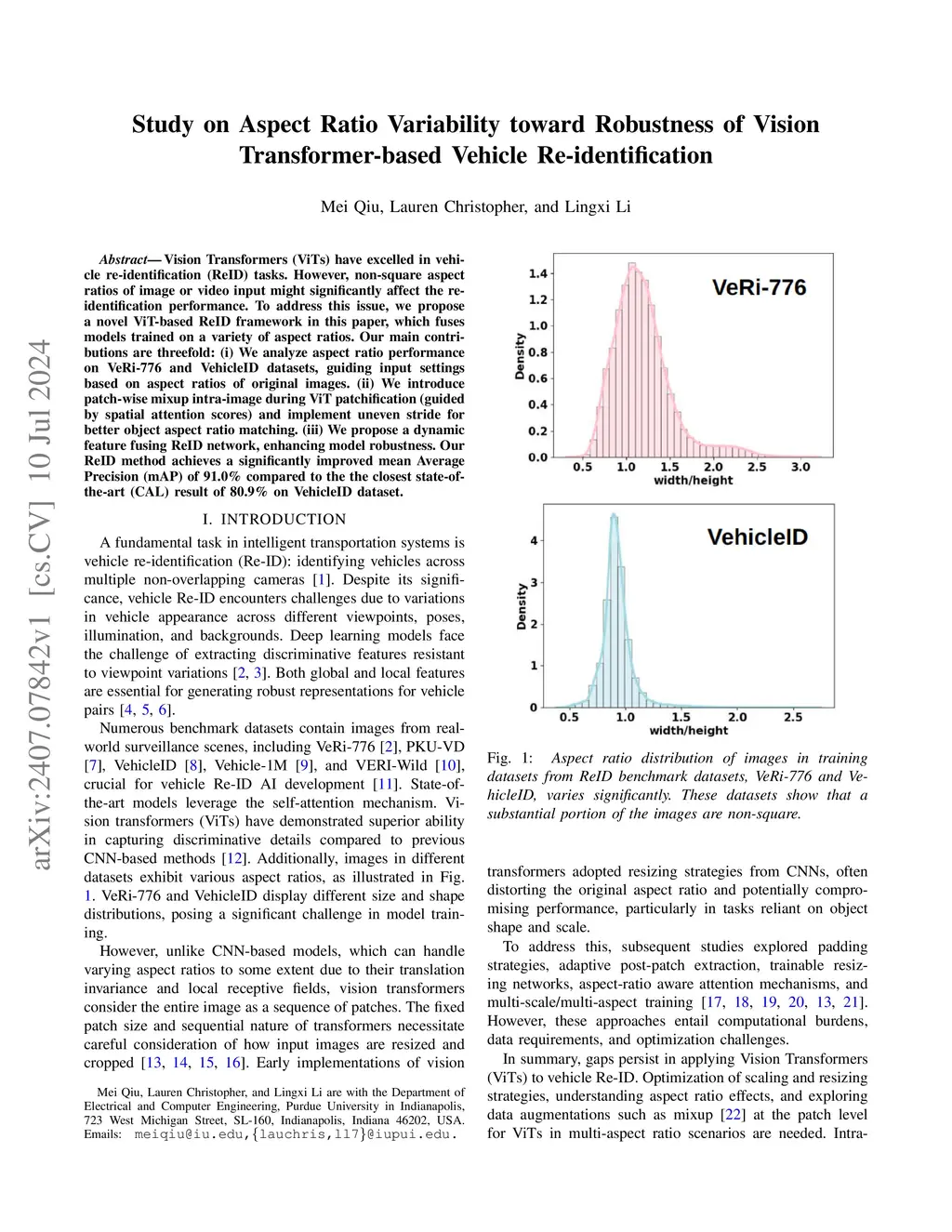 Vision Transformers (ViTs) have excelled in vehicle re-identification (ReID) tasks. However, non-square aspect ratios of image or video input might significantly affect the re-identification performance. To address this issue, we propose a novel ViT-based ReID framework in this paper, which fuses models trained on a variety of aspect ratios. Our main contributions are threefold: (i) We analyze aspect ratio performance on VeRi-776 and VehicleID datasets, guiding input settings based on aspect ratios of original images. (ii) We introduce patch-wise mixup intra-image during ViT patchification (guided by spatial attention scores) and implement uneven stride for better object aspect ratio matching. (iii) We propose a dynamic feature fusing ReID network, enhancing model robustness. Our ReID method achieves a significantly improved mean Average Precision (mAP) of 91.0\% compared to the the closest state-of-the-art (CAL) result of 80.9\% on VehicleID dataset.