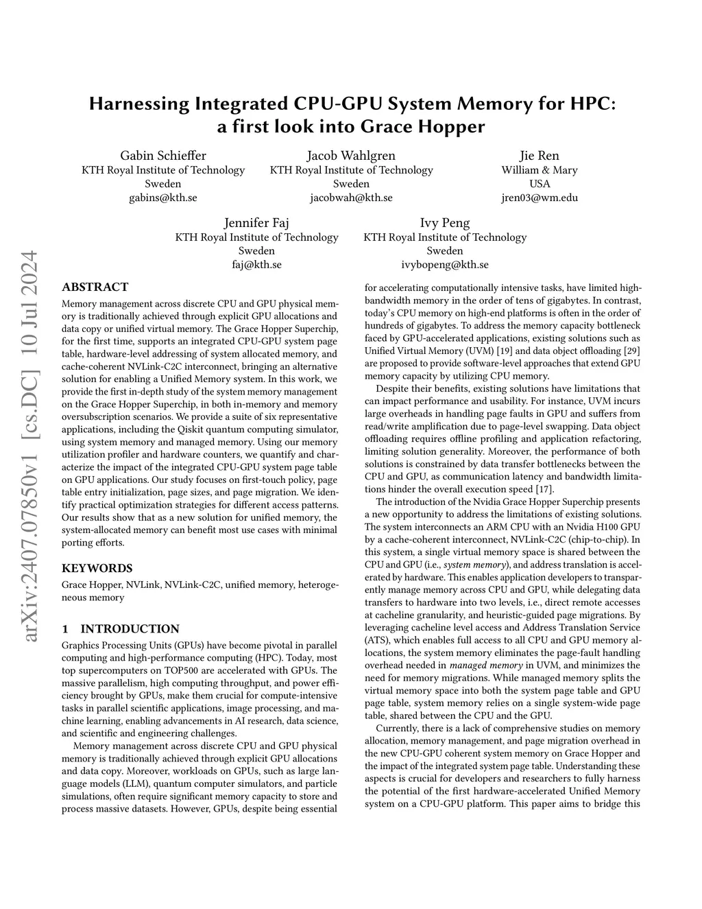Harnessing Integrated CPU-GPU System Memory for HPC: a first look into