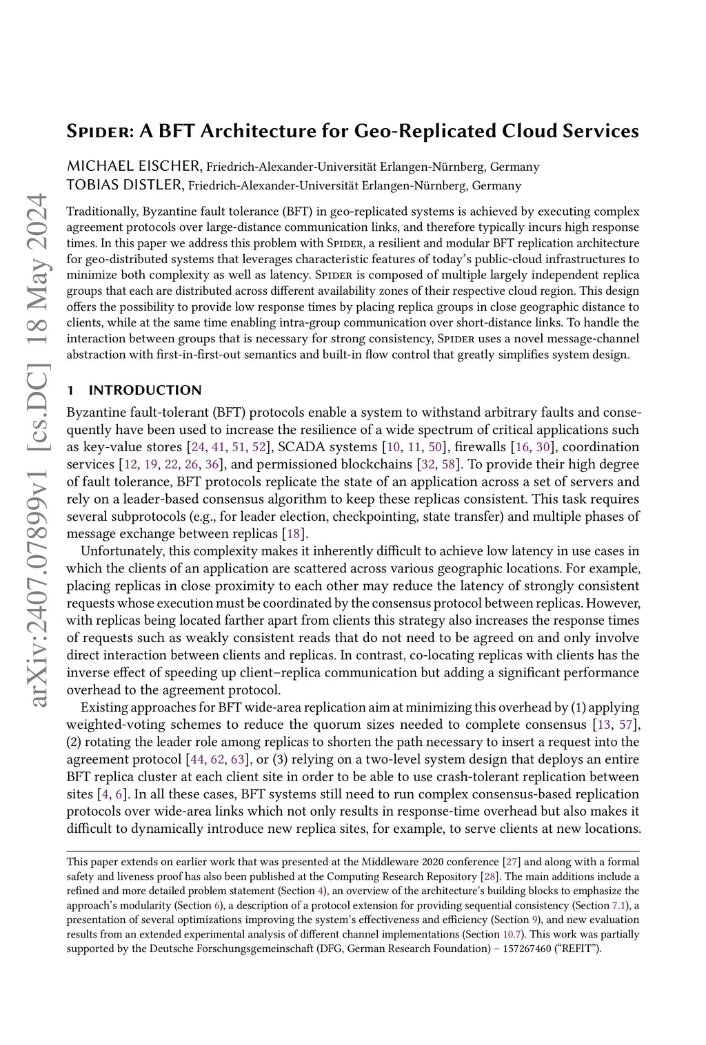 Spider: A BFT Architecture for Geo-Replicated Cloud Services