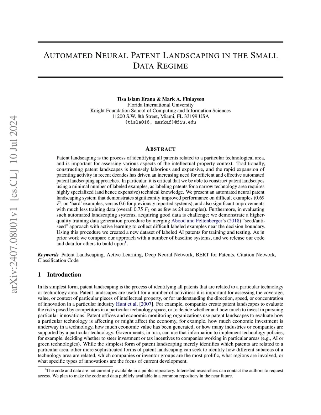 Automated Neural Patent Landscaping in the Small Data Regime