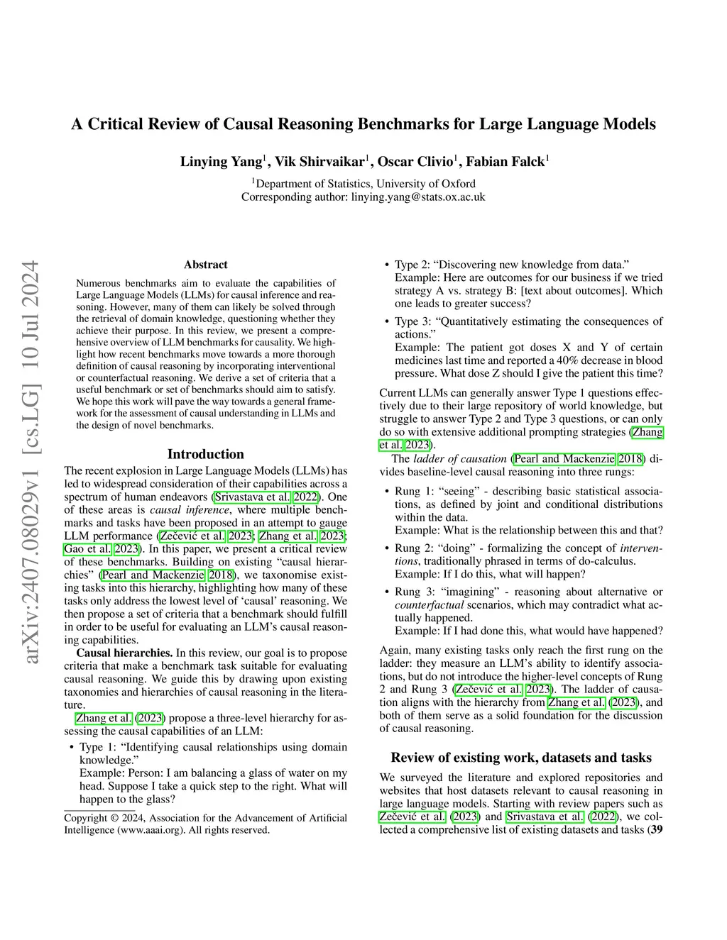 A Critical Review of Causal Reasoning Benchmarks for Large Language