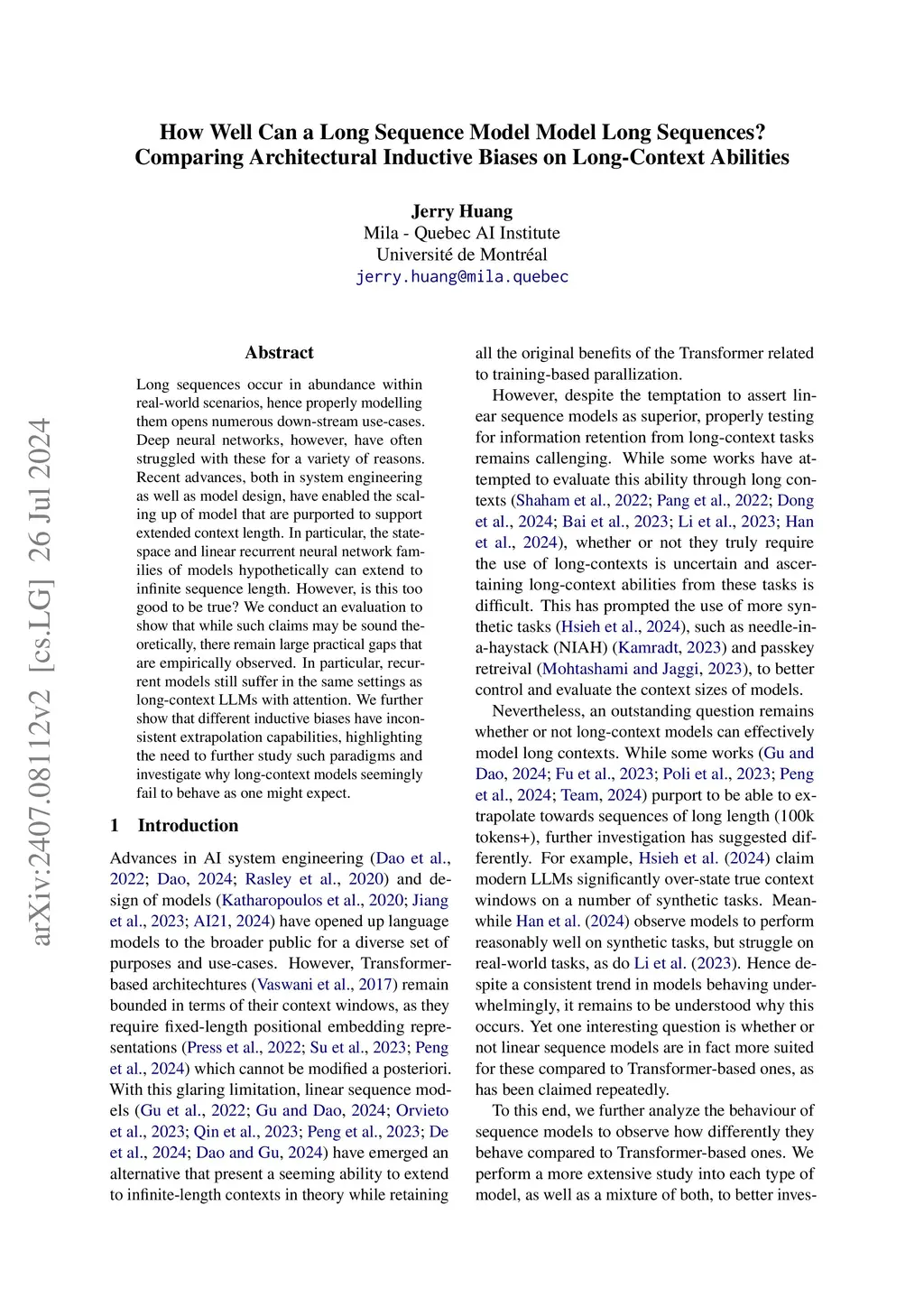 How Well Can a Long Sequence Model Model Long Sequences? Comparing Architechtural Inductive Biases on Long-Context Abilities
