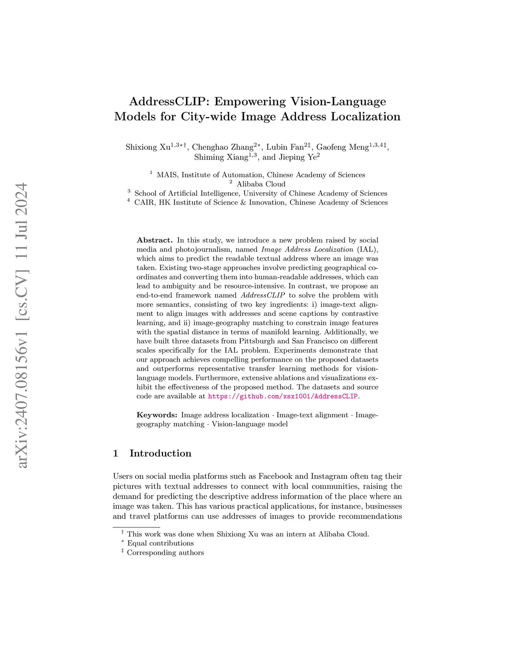 AddressCLIP: Empowering Vision-Language Models for City-wide Image