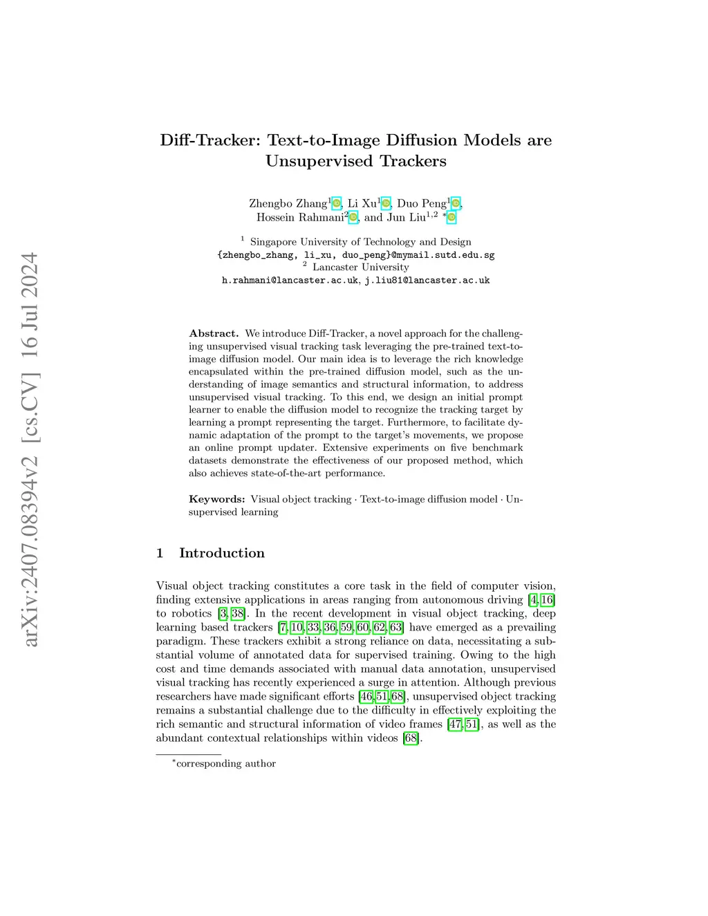 Diff-Tracker: Text-to-Image Diffusion Models are Unsupervised Trackers