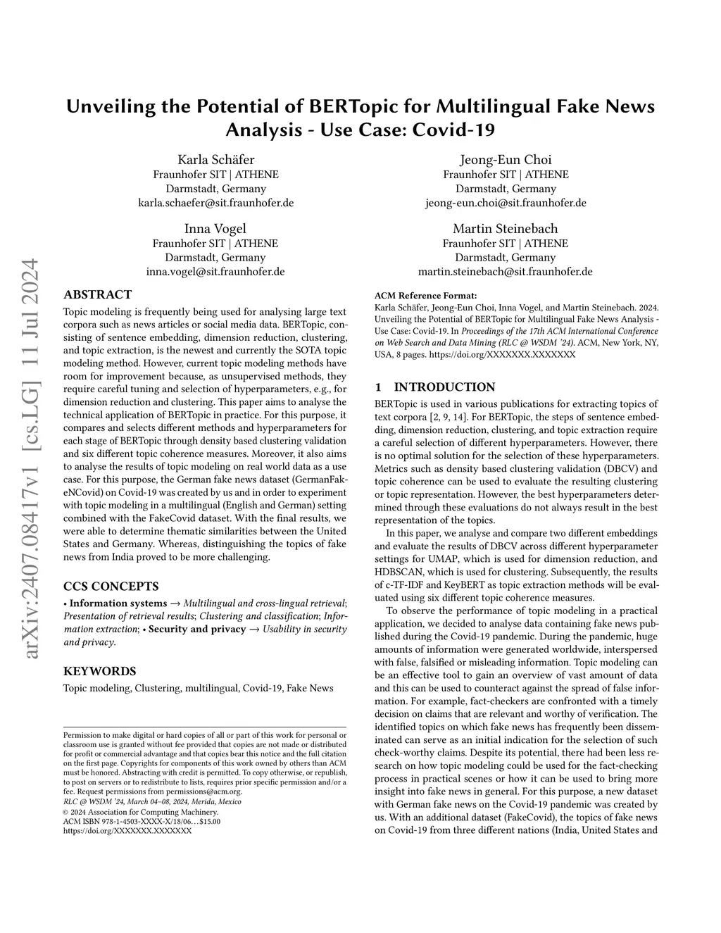 Unveiling the Potential of BERTopic for Multilingual Fake News Analysis