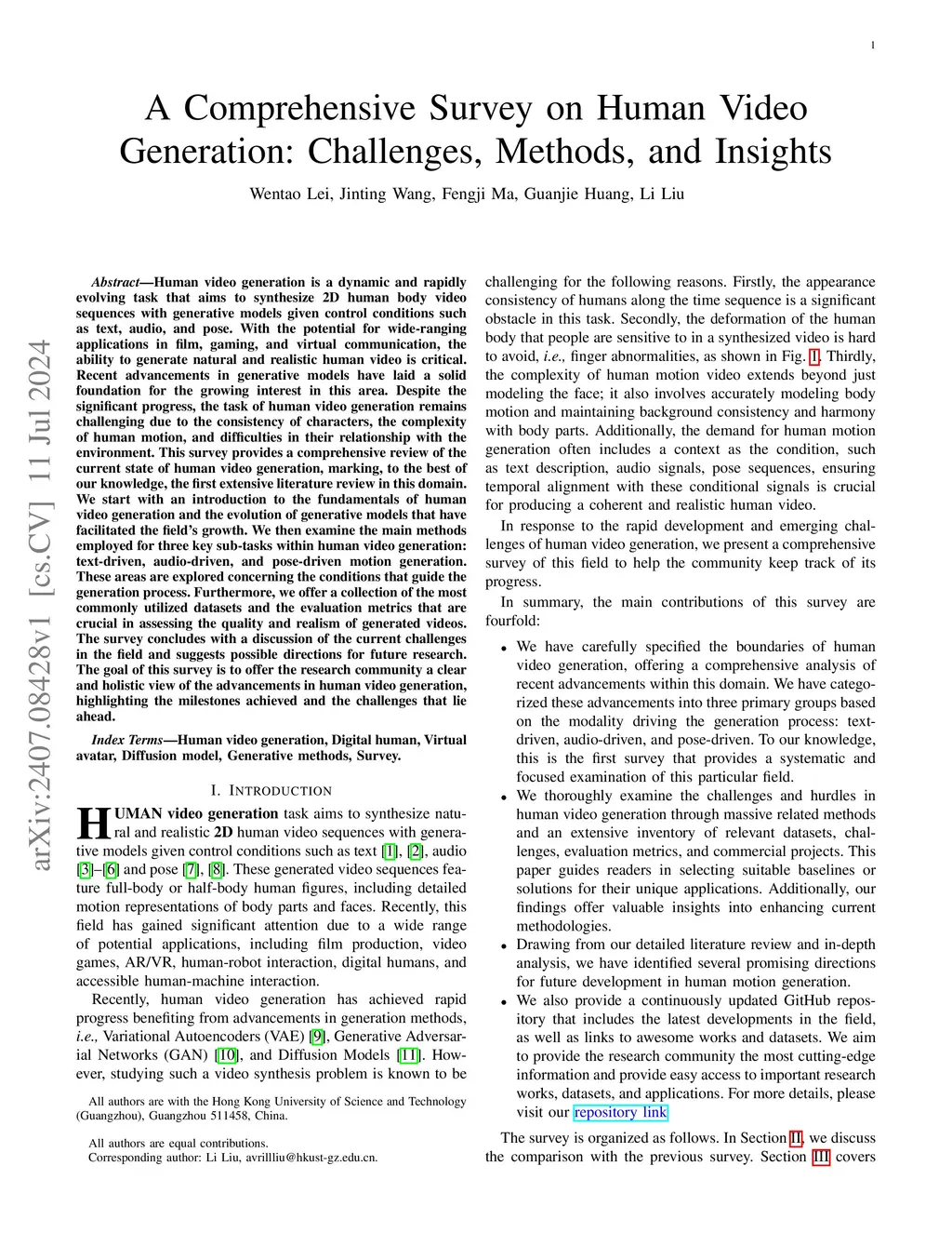 A Comprehensive Survey on Human Video Generation: Challenges, Methods,