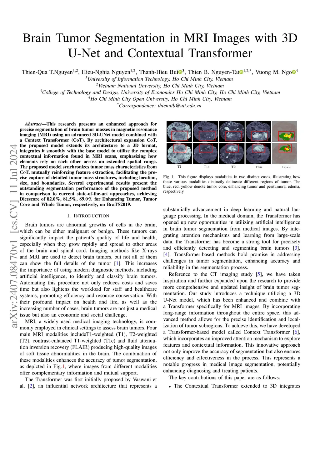 Brain Tumor Segmentation in MRI Images with 3D U-Net and Contextual