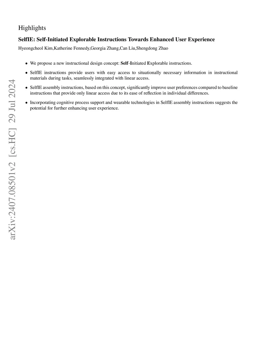 SelfIE: Self-Initiated Explorable Instructions Towards Enhanced User