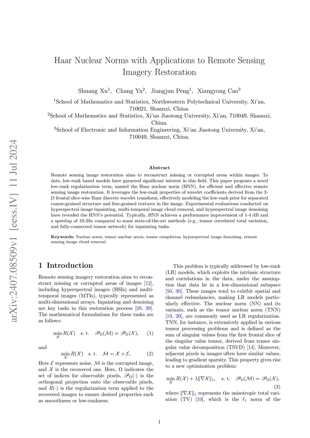 Haar Nuclear Norms with Applications to Remote Sensing Imagery