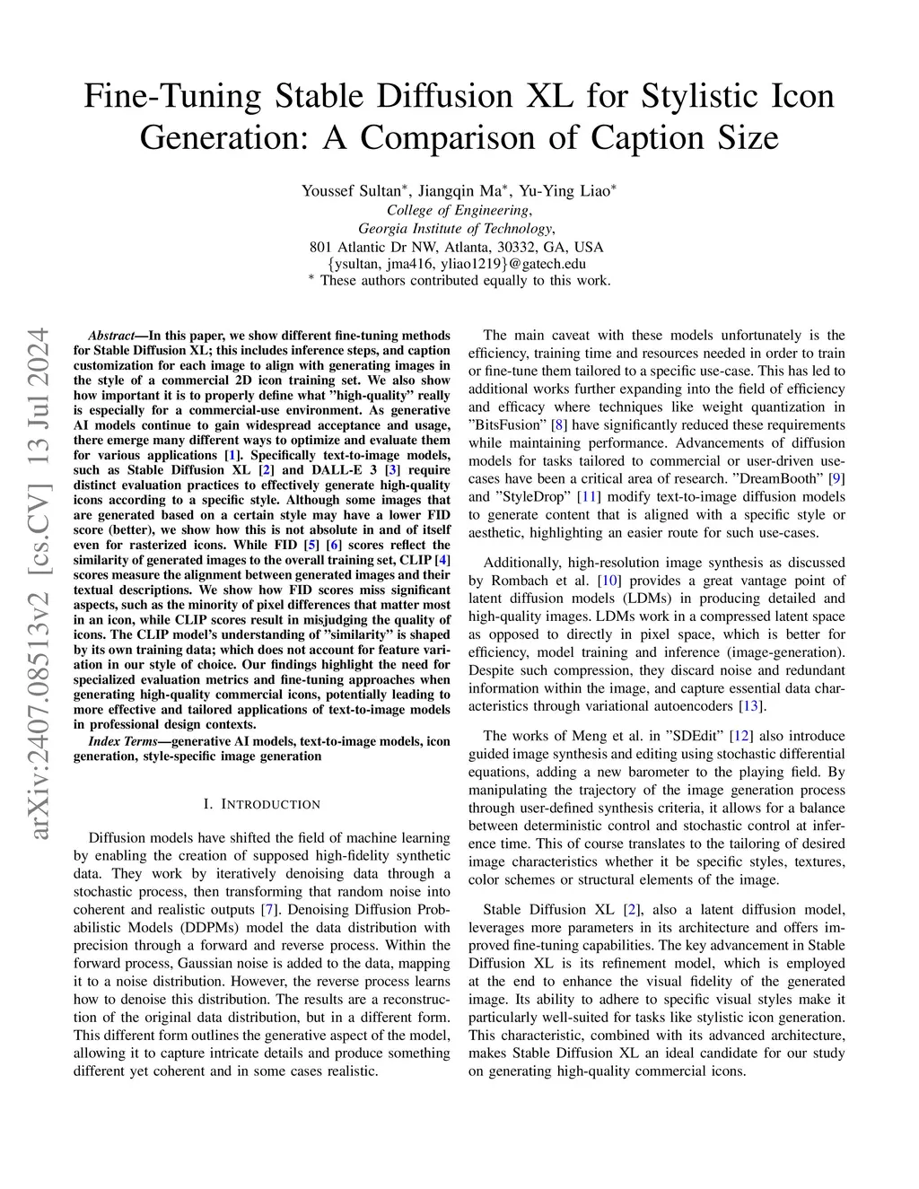 Fine-Tuning Stable Diffusion XL for Stylistic Icon Generation: A