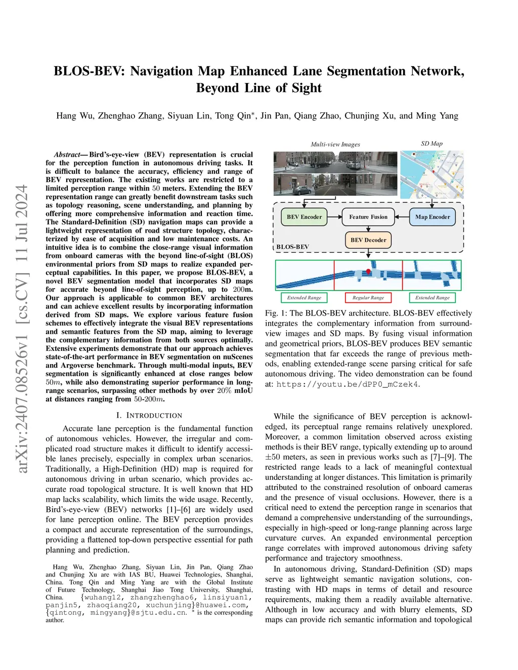 BLOS-BEV: Navigation Map Enhanced Lane Segmentation Network, Beyond Line