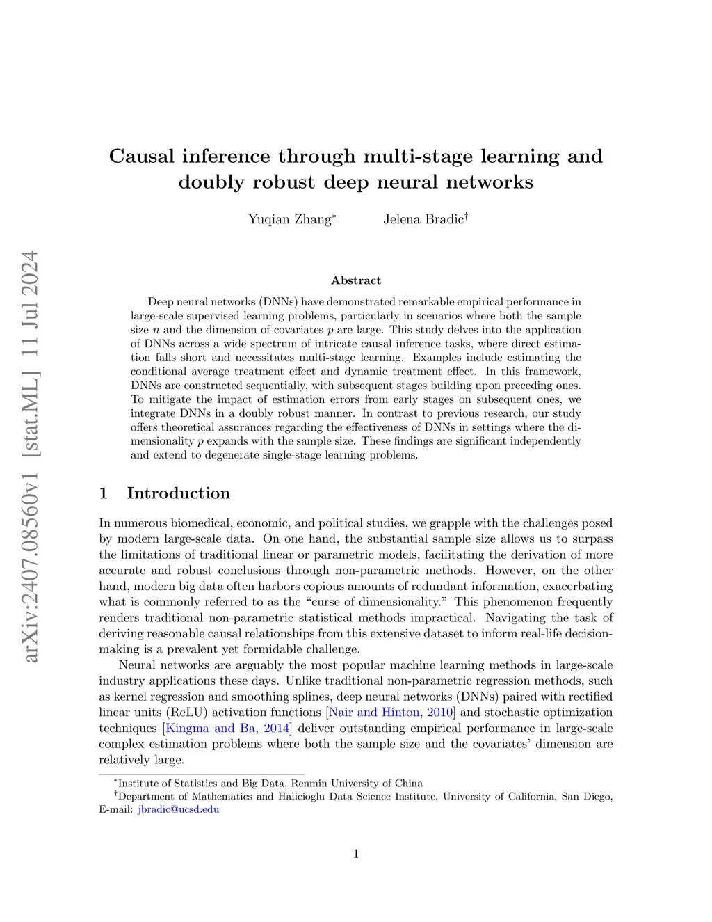 Deep neural networks (DNNs) have demonstrated remarkable empirical performance in large-scale supervised learning problems, particularly in scenarios where both the sample size and the dimension of covariates are large. This study delves into the application of DNNs across a wide spectrum of intricate causal inference tasks, where direct estimation falls short and necessitates multi-stage learning. Examples include estimating the conditional average treatment effect and dynamic treatment effect. In this framework, DNNs are constructed sequentially, with subsequent stages building upon preceding ones. To mitigate the impact of estimation errors from early stages on subsequent ones, we integrate DNNs in a doubly robust manner. In contrast to previous research, our study offers theoretical assurances regarding the effectiveness of DNNs in settings where the dimensionality expands with the sample size. These findings are significant independently and extend to degenerate single-stage learning problems.