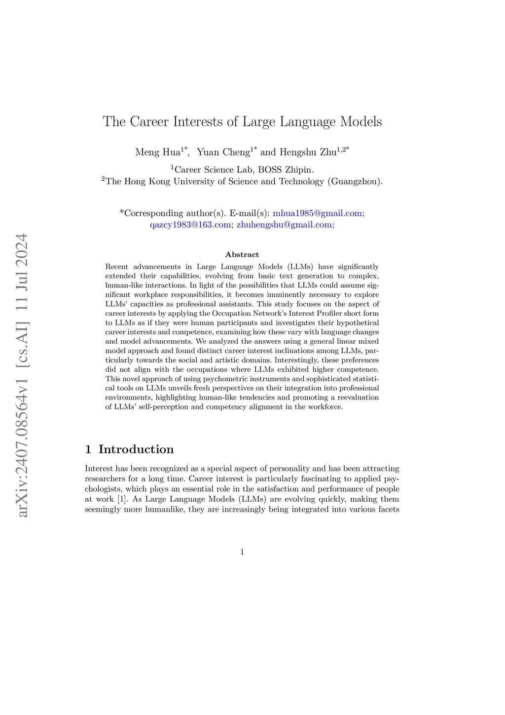 Recent advancements in Large Language Models (LLMs) have significantly extended their capabilities, evolving from basic text generation to complex, human-like interactions. In light of the possibilities that LLMs could assume significant workplace responsibilities, it becomes imminently necessary to explore LLMs' capacities as professional assistants. This study focuses on the aspect of career interests by applying the Occupation Network's Interest Profiler short form to LLMs as if they were human participants and investigates their hypothetical career interests and competence, examining how these vary with language changes and model advancements. We analyzed the answers using a general linear mixed model approach and found distinct career interest inclinations among LLMs, particularly towards the social and artistic domains. Interestingly, these preferences did not align with the occupations where LLMs exhibited higher competence. This novel approach of using psychometric instruments and sophisticated statistical tools on LLMs unveils fresh perspectives on their integration into professional environments, highlighting human-like tendencies and promoting a reevaluation of LLMs' self-perception and competency alignment in the workforce.