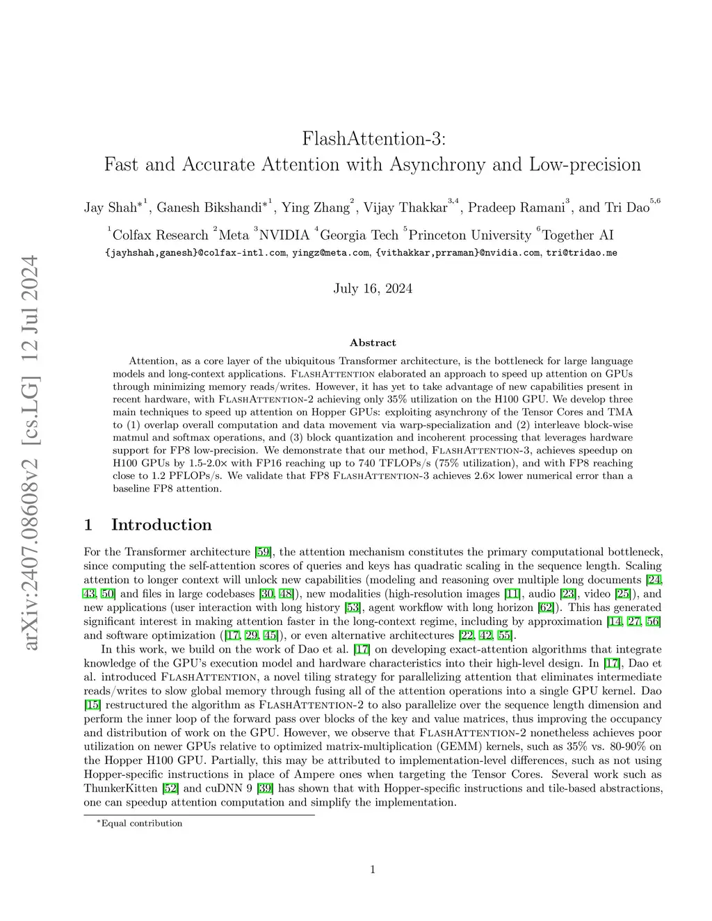 FlashAttention-3: Fast and Accurate Attention with Asynchrony and